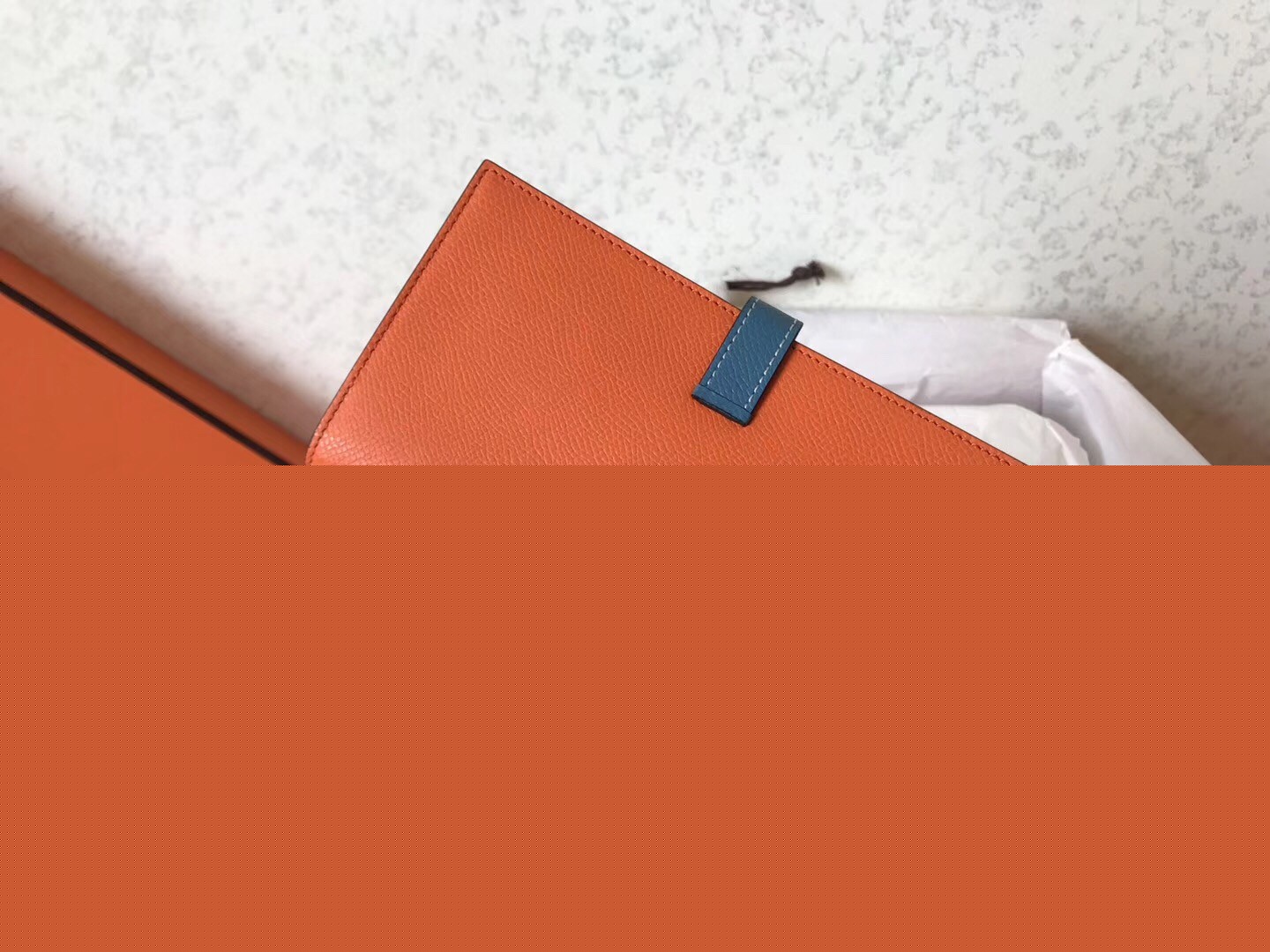 Hermes Bi-Color Epsom Bearn Wallet Orange/Blue Jean