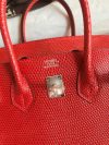 First adorned on the arm of the infamous Jane Birkin back in 1984, the Hermes Birkin Bag quickly soared to the top of the popularity charts, becoming one of the most sought after bags in the fashion industry. The Retourne style Birkin bag has a soft and relaxed look. Made from Lizard leather, this skin is extremely valuable and rare and is processed as little as possible to maintain its natural texture. The 25 cm size is a glamorous choice for day to evening, cocktails or the red carpet.