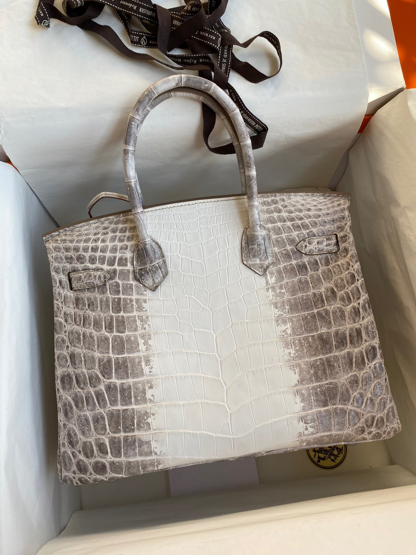 Hermes Birkin 30 Handmade Bag In Himalaya Niloticus Crocodile Skin