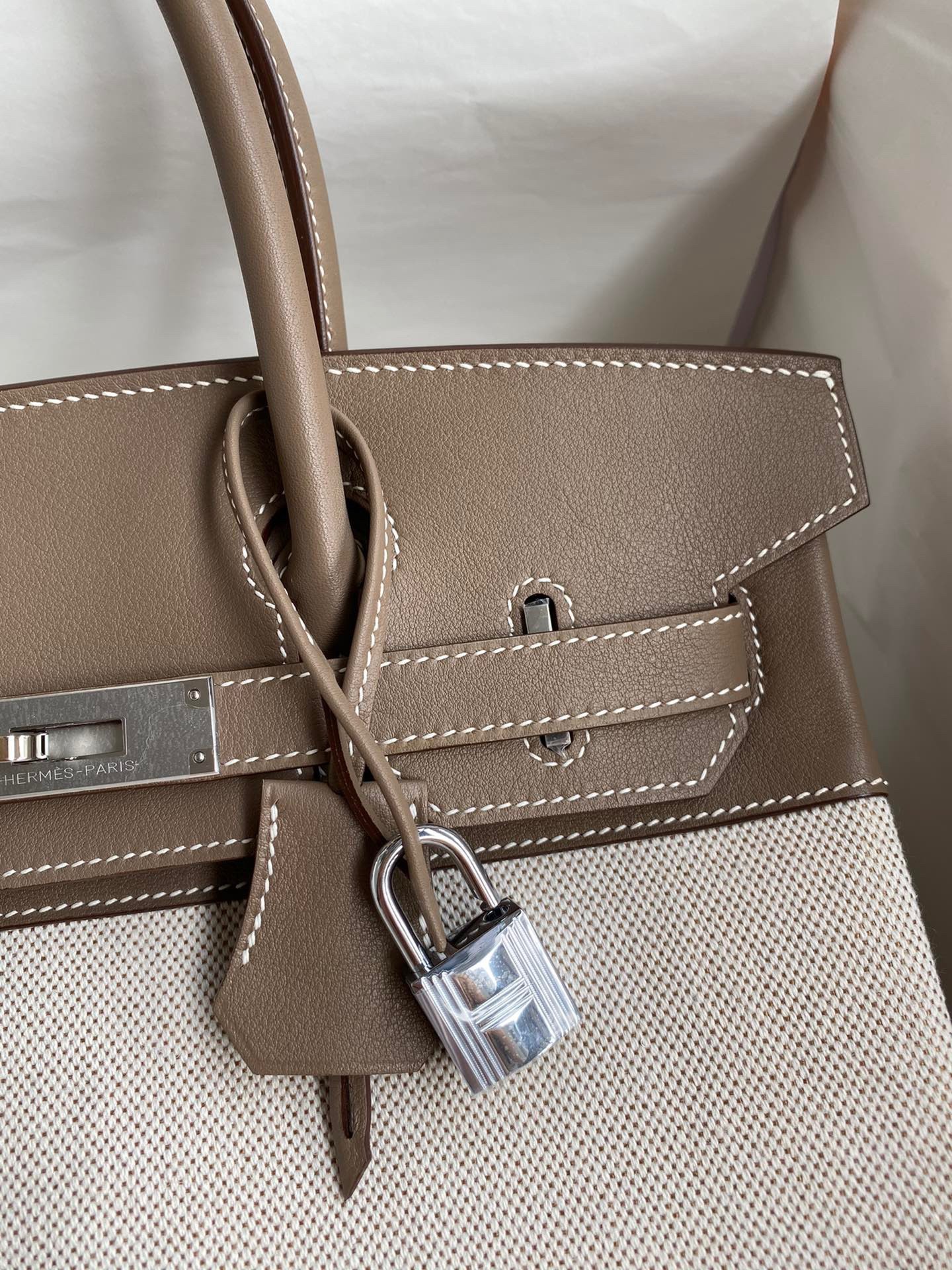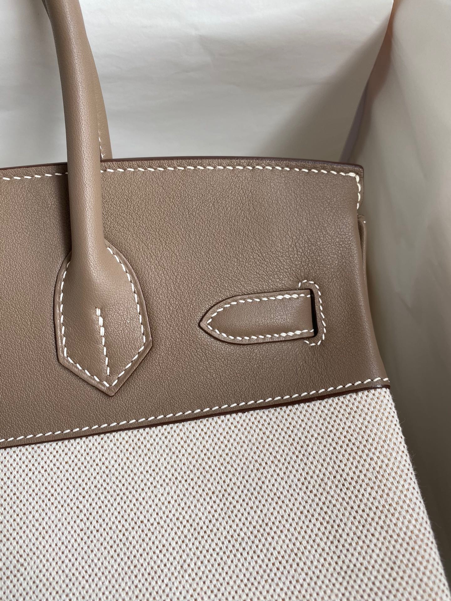 Hermes Birkin 30 Handmade Bag In Toile & Tourterelle Swift Leather