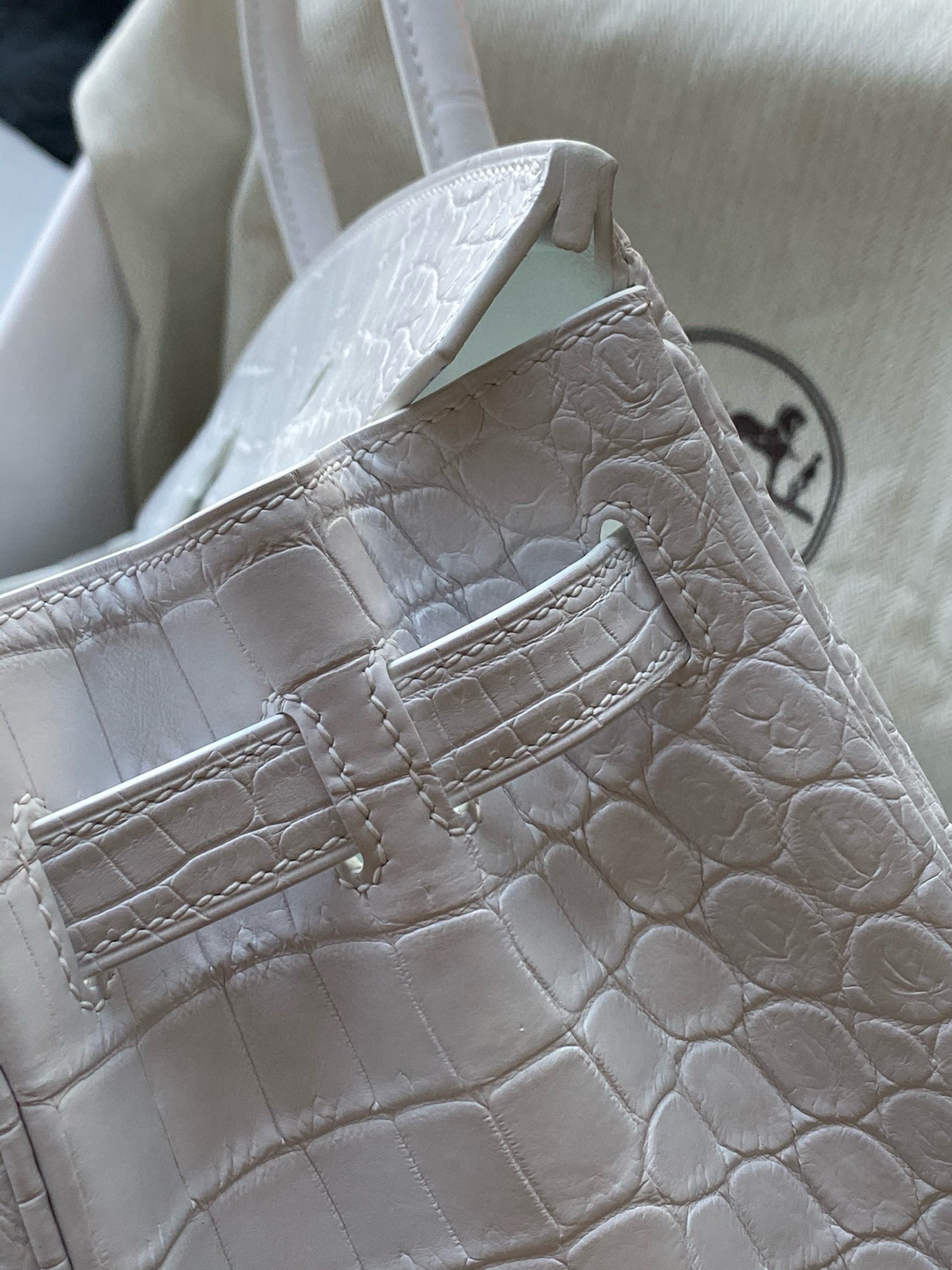 The original Herm??s Birkin bag was inspired by and named after 60’s fashion icon Jane Birkin. It was designed to be a luxury bag that would meet the needs and stand up to daily use by a multitasking woman on the go. Coming directly from Africa’s Nile River in a region of Zimbabwe, this skin offers a matte finish and a more distinct pattern. The highly sought after larger scales on this skin makes this Birkin 30 bag an iconic choice in the fashion industry. Make sure to keep this skin away from water as wet can cause permanent damage.