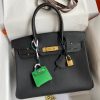 The original Herm??s Birkin bag was inspired by and named after 60’s fashion icon Jane Birkin. It was designed to be a luxury bag that would meet the needs and stand up to daily use by a multitasking woman on the go. The Birkin 30 is the Goldilocks of the Birkin bag family, It is the ideal Herm??s bag for everyday use. Created in Retourne style, thanks to the taurillon Clemence leather gives this bag the buttery soft feel that only comes from the highest quality leather.