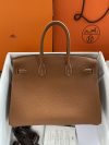 The Herm??s Birkin 35cm is the original Birkin bag and in even greater demand now than when it was one of the original ??It Bags.?? Inspired by and named for fashion icon Jane Birkin, the Birkin 35 was designed to answer the needs of a busy, multi-tasking woman on the go. Created in Retourne style, which features inside stitching, lending a more relaxed look to the bag. Handcrafted from Taurillon Clemence leather, which named in tribute to the daughter of the designer who introduced it into the collections. A spacious carryall, the Birkin 35 is an ideal travel bag and doubles as a feminine briefcase.