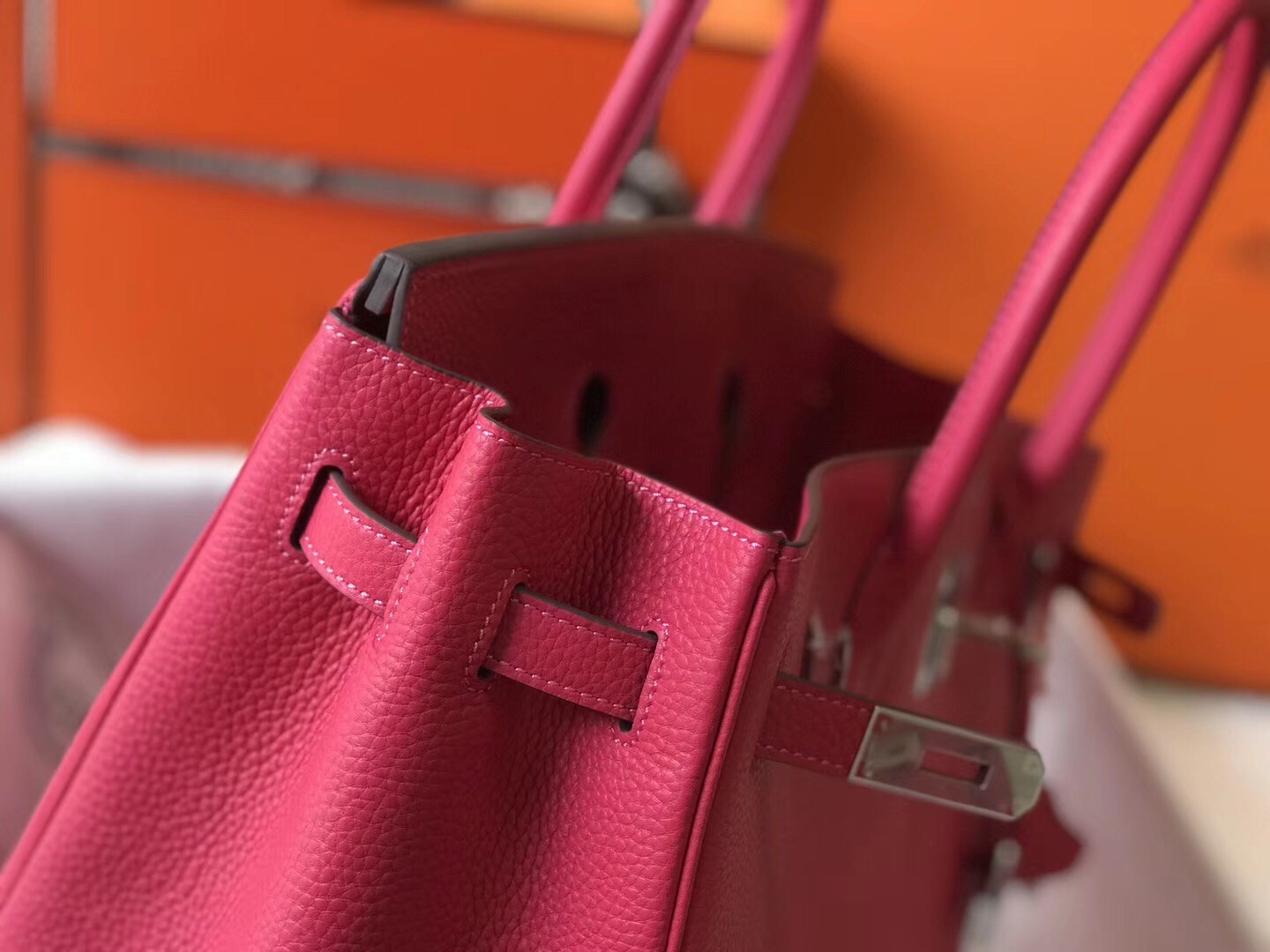 Hermes Birkin 35cm Bag In Rose Red Clemence Leather