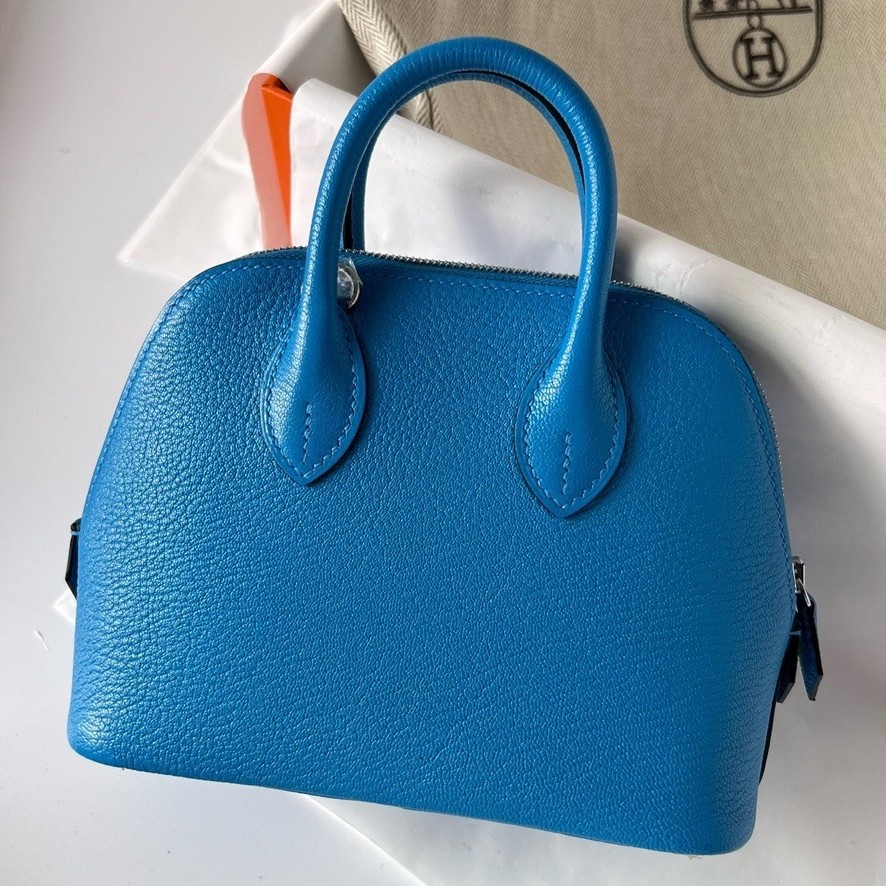The Herm??s Bolide was introduced in 1923 when Emile-Maurice Herm??s created this handbag for his wife to use for an automobile event in Paris. Herm??s Mini Bolide was first introduced around 2011 and is the most popular size due to growing popularity of mini bags. This shrunk-down Herm??s Bolide perfectly fits an evening’s necessities – your eyeliner, cardholder, keys, and phone. The carefree bag is crafted from durable, scratch-resistant Chevre Mysore leather. Use the detachable shoulder strap to wear it crossbody, or carry it hand-held.