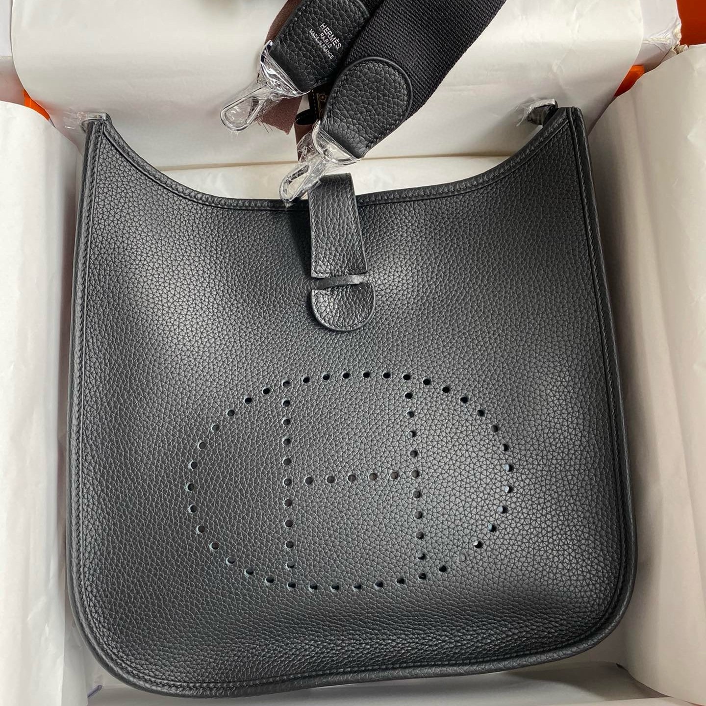 Hermes Evelyne III PM 29 Handmade Bag in Black Clemence Leather
