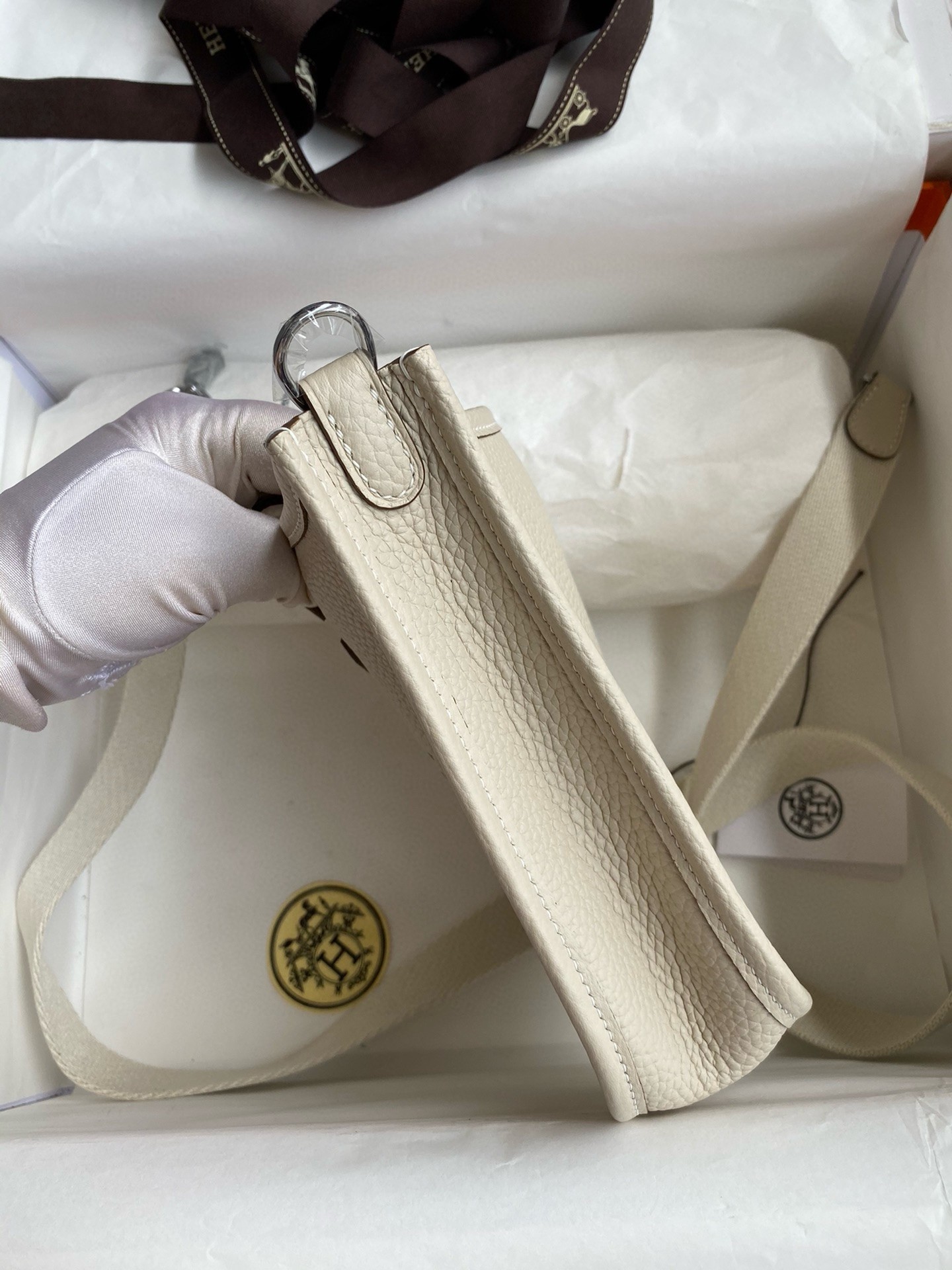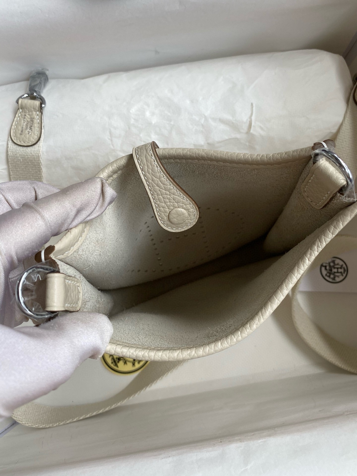 Hermes Evelyne Mini Handmade Bag in Craie Clemence Leather
