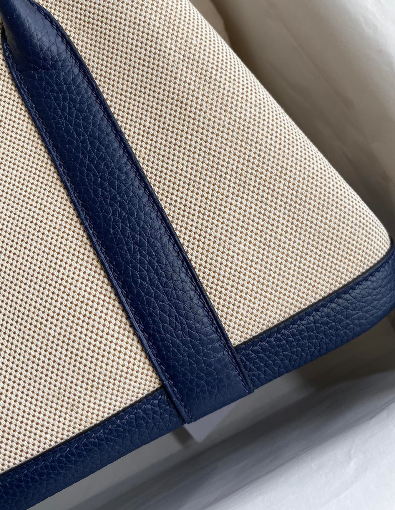 Hermes Garden Party 30 Handmade Bag in Toile and Blue Leather