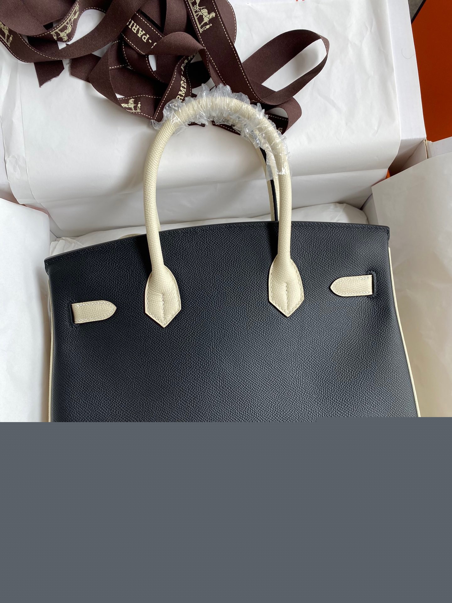 Hermes HSS Birkin 30 Bicolor Bag in Black and Craie Epsom Calfskin