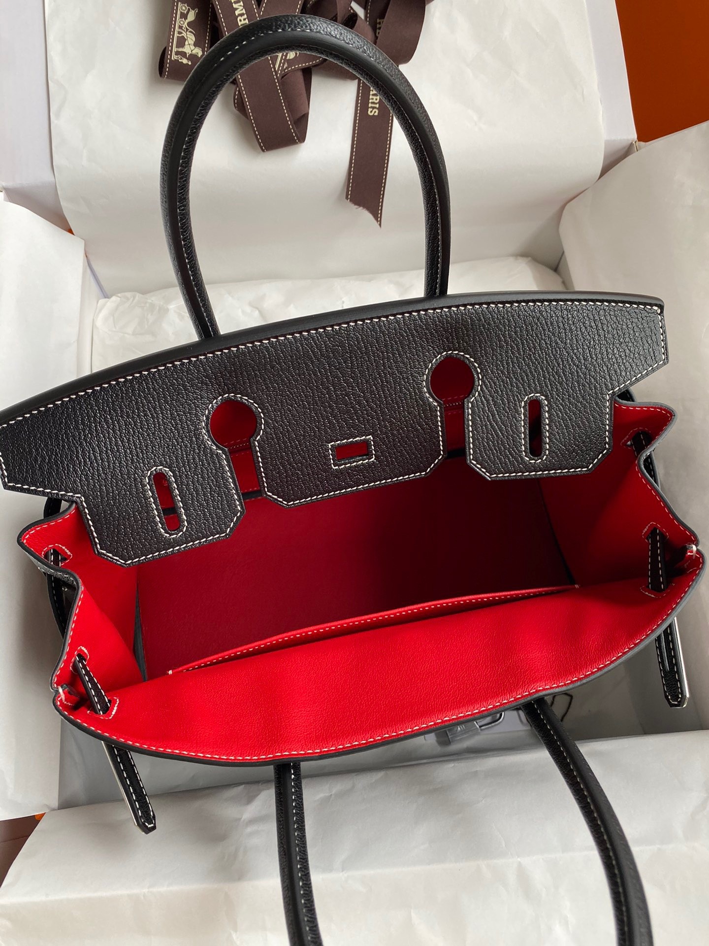 Hermes HSS Birkin 30 Bicolor Bag in Black and Red Chevre Mysore Leather