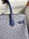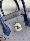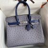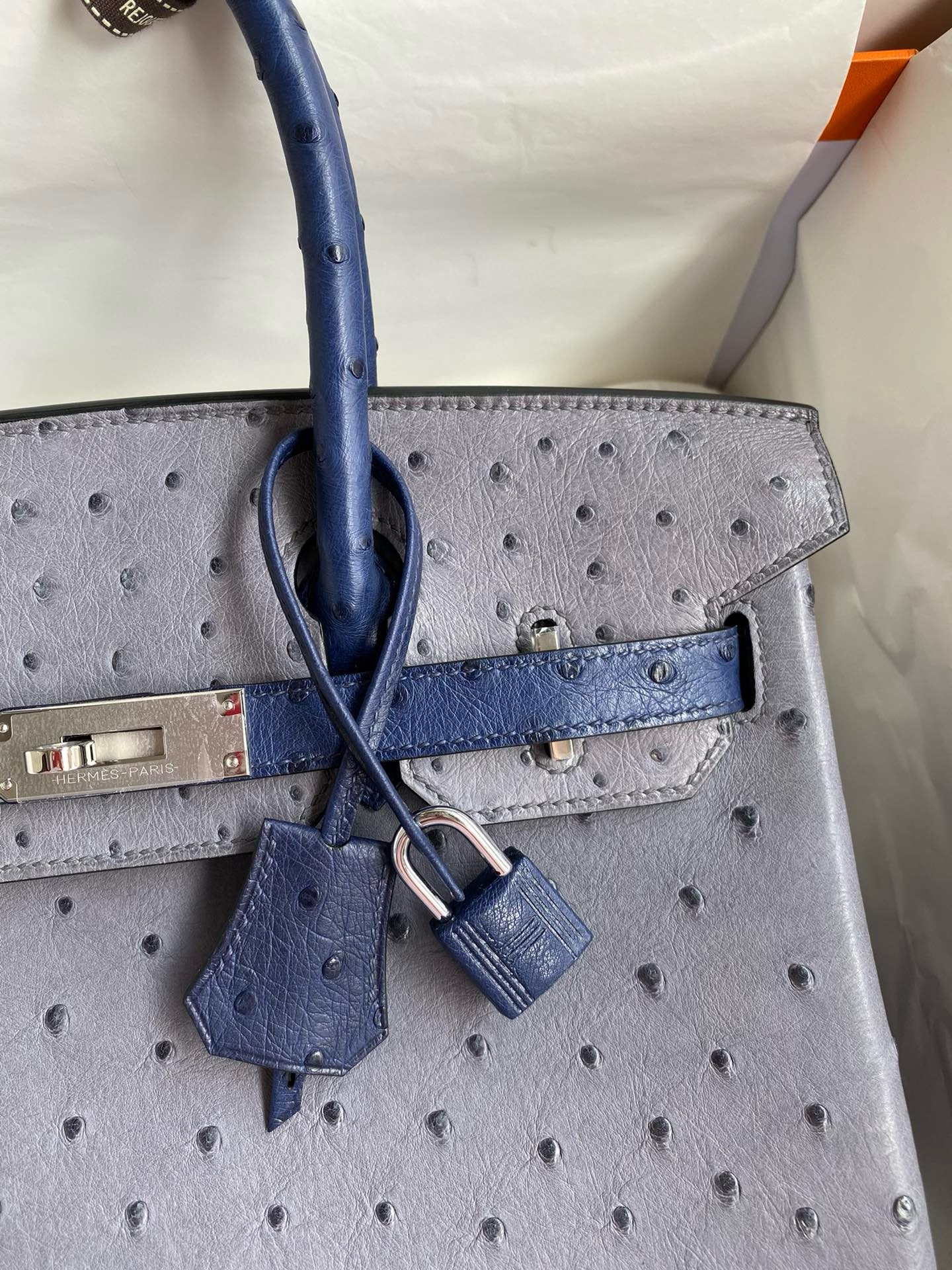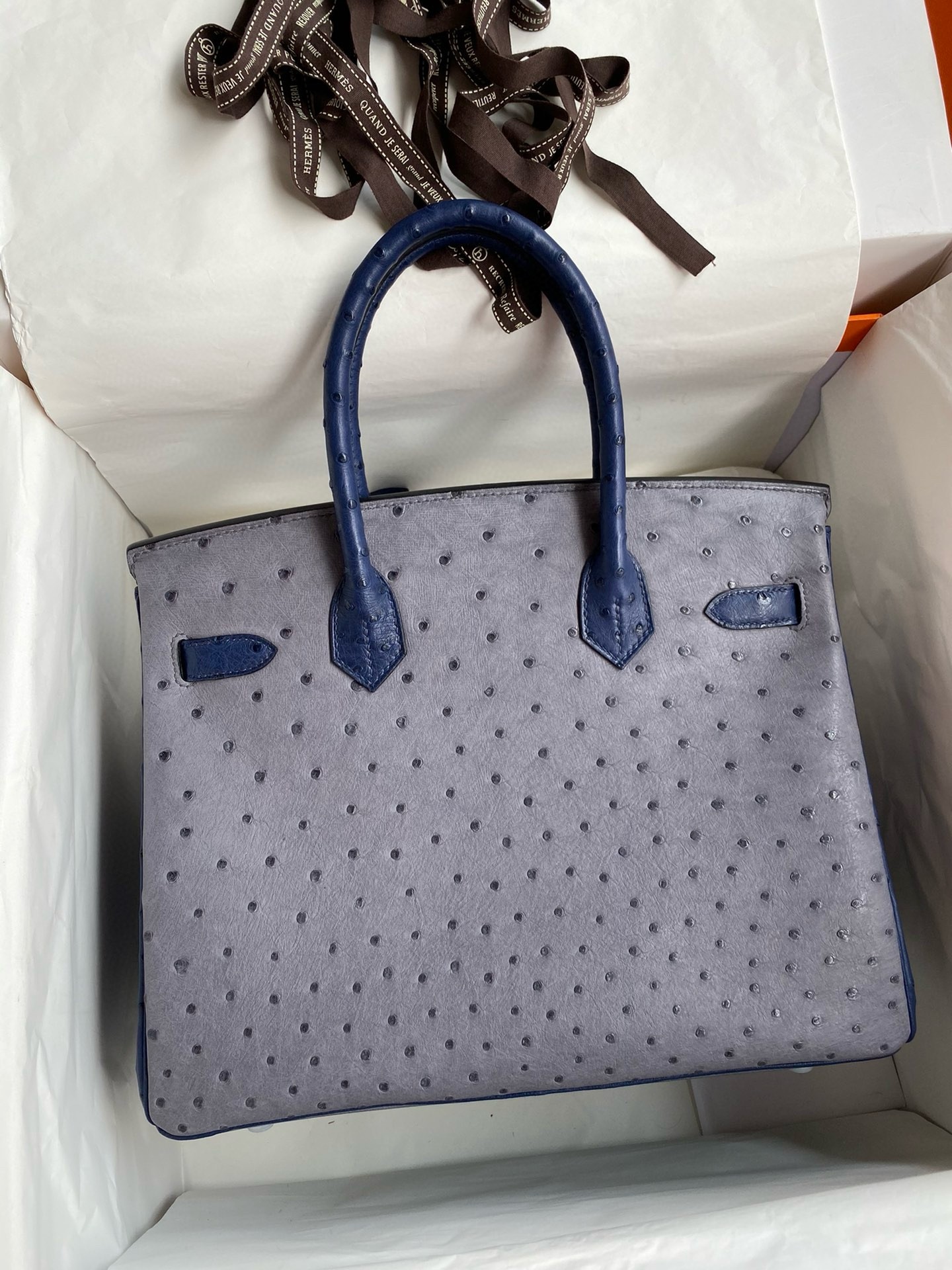 The opportunity to Special Order a bag from Herm??s is only offered to the next level of VIP clients, a rare treat for those who have already managed to purchase a number of Birkin’s and Kelly’s from the House. These bags, which since 2006 have had the iconic horseshoe stamp, or HSS as many call it, are unique as they can be ordered with multiple colors otherwise not produced together. This 30cm example is one such HSS Birkin, done in two color blue iris & gris agate desirable Ostrich leather.