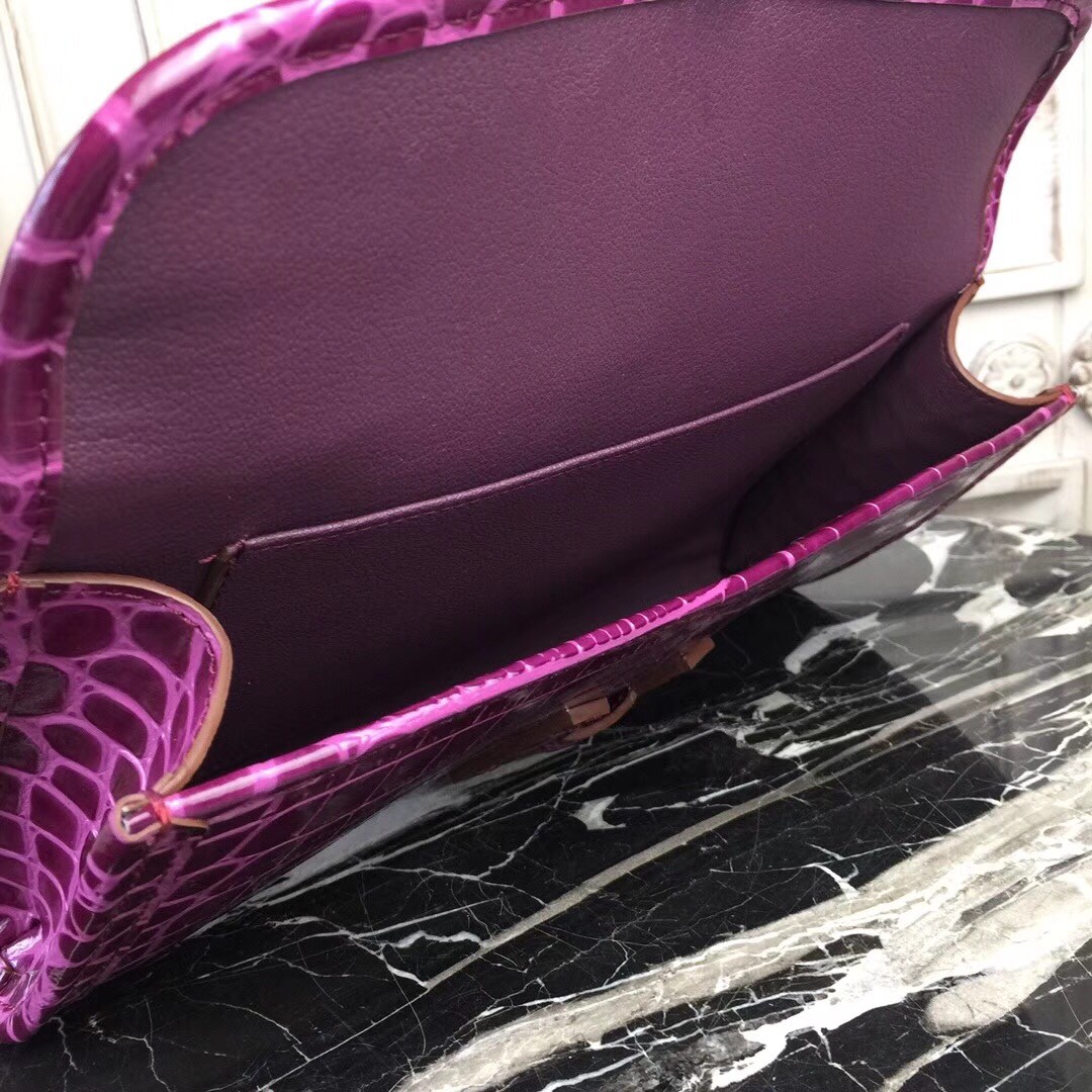 Hermes Jige Elan 29 Clutch In Fuchsia Crocodile Leather