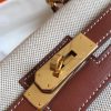 This was created around 1930 and gained it’s name when Grace Kelly used it as a shield against the paparazzi and the image was shown on the cover of Time magazine. The size 28 is great if you’re on the petite side or if you want prefer a more formal look. This Kelly Sellier has a classic structured shape and features a mixture of Barenia leather in dark brown and Toile H canvas that provides to its figure the stiffness of its silhouette.