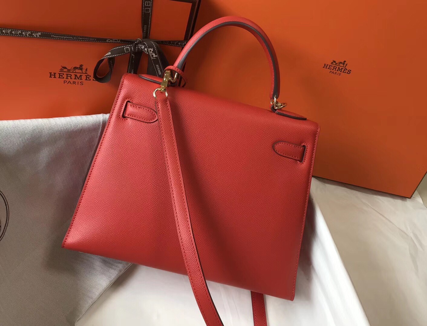 Hermes Kelly 28cm Sellier Bag In Red Epsom Leather
