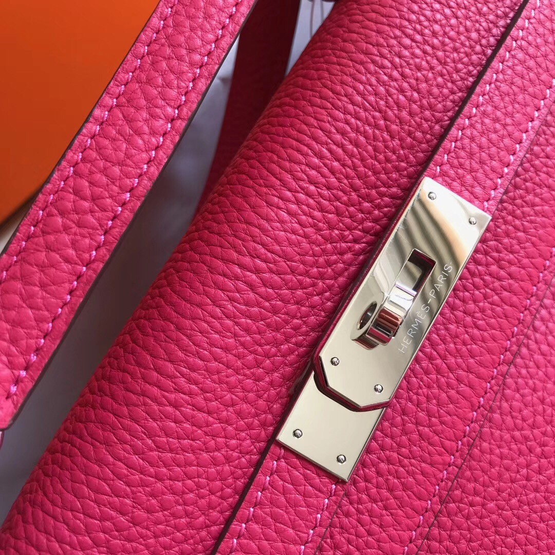 Hermes Kelly 32cm Retourne Bag In Rose Red Clemence Leather