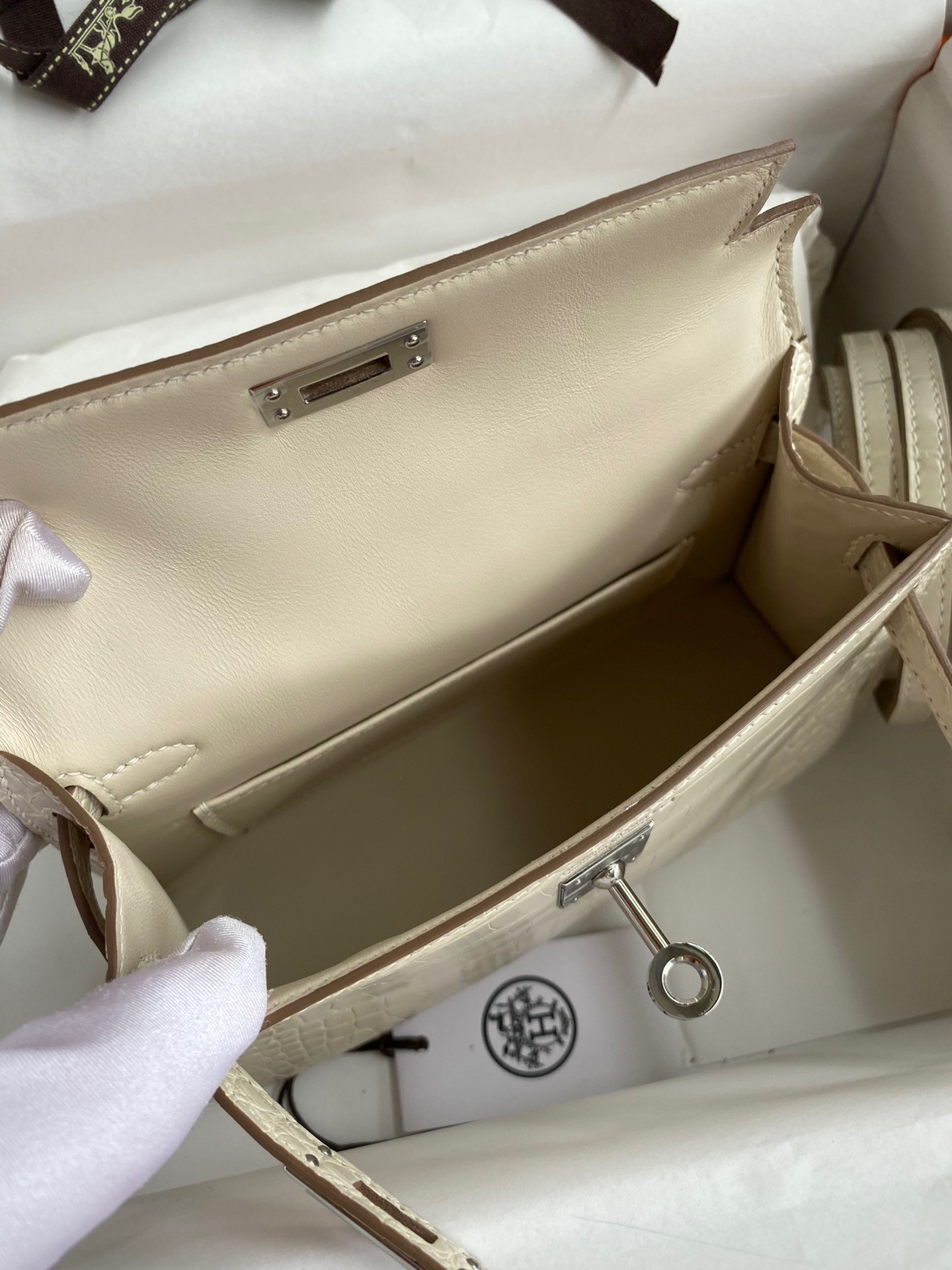 It wasn’t until Fall 2016 that Herm??s re-launched the modernized Mini Kelly II, which collectors and celebrities swooned over instantly. Delicate and very expensive, the skin of this bag is farmed from the Alligator Mississippiensis alligator, also known as the American Alligator. Should be kept away from water. It an exquisite cocktail bag and an inspired choice for a red carpet event.