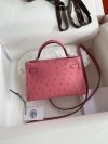 Hermes Kelly Mini II Sellier Handmade Bag In Bubblegum Ostrich Leather