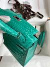 It wasn’t until Fall 2016 that Herm??s re-launched the modernized Mini Kelly II, which collectors and celebrities swooned over instantly. Delicate and very expensive, the skin of this bag is farmed from the Alligator Mississippiensis alligator, also known as the American Alligator, which is created by polishing the spots with agate for a lisse finish. Should be kept away from water. It an exquisite cocktail bag and an inspired choice for a red carpet event.