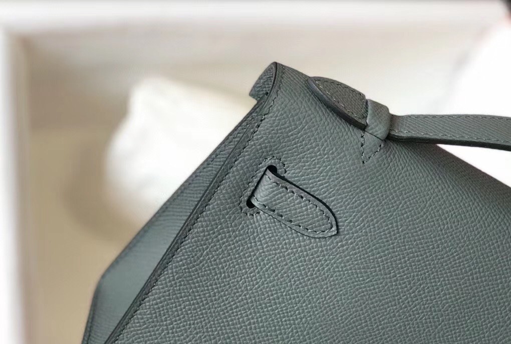 Hermes Kelly Pochette Bag In Vert Amande Epsom Leather