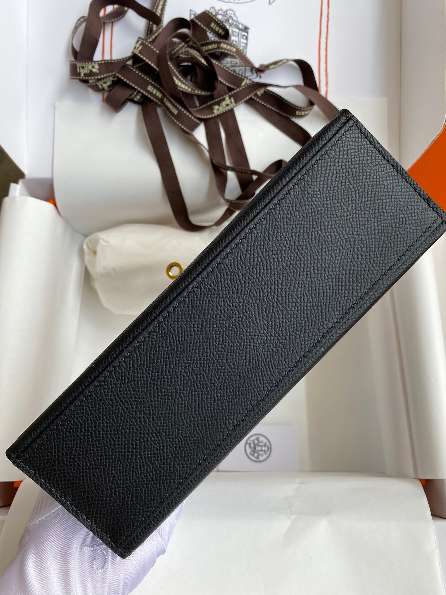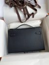The Kelly Pochette was Jean-Paul Gaultier’s clutch interpretation of the classic Kelly bag. Introduced on the fall runway of his first collection for the House in 2004, the Kelly Pochette was an instant hit. This handbag is made from Epsom calfskin, which named from a town in south-east England that is famous for its horse races. The Kelly pochette is a true clutch with neither feet nor shoulder strap. It is remarkably roomy, holding more than the Kelly cut or the mini Kelly.