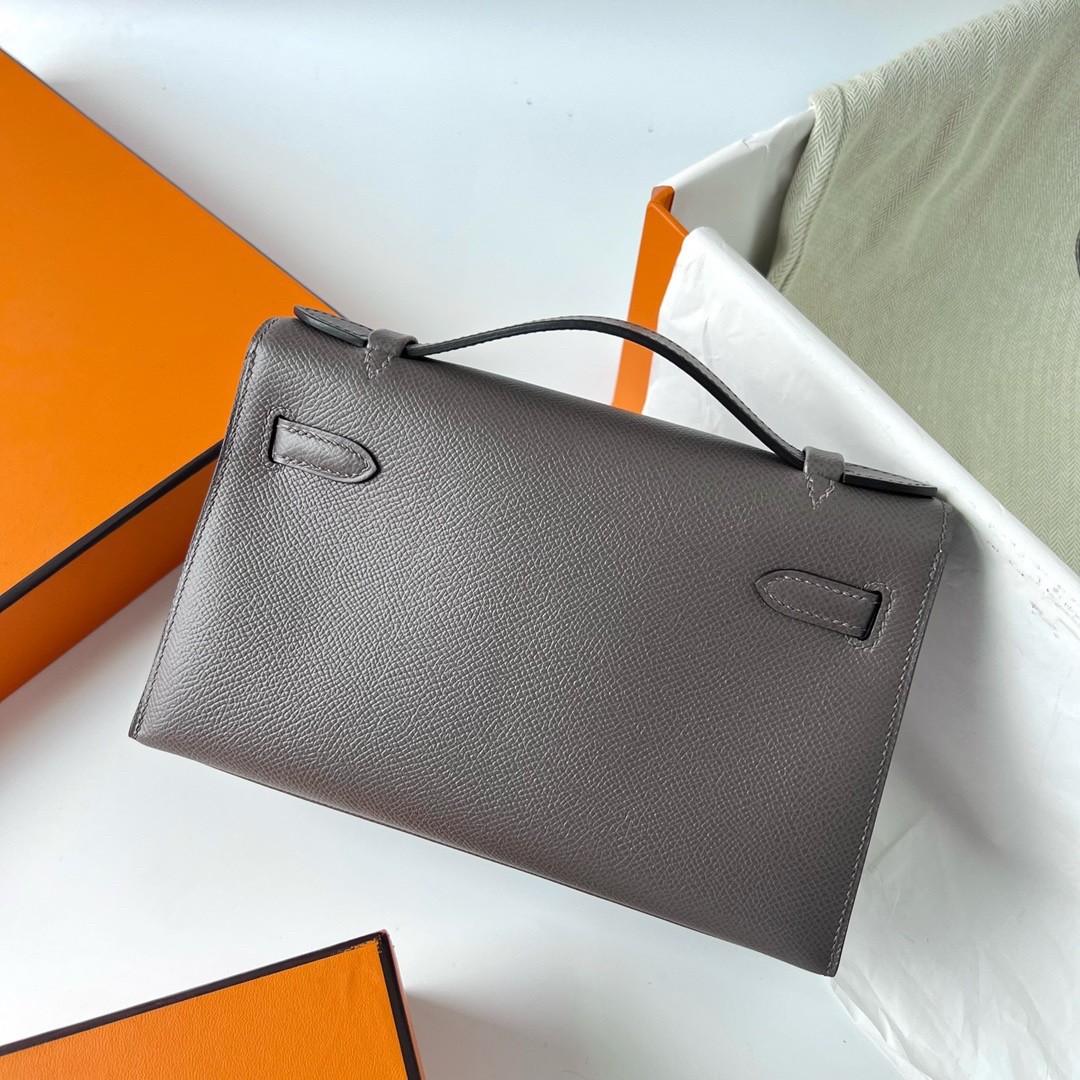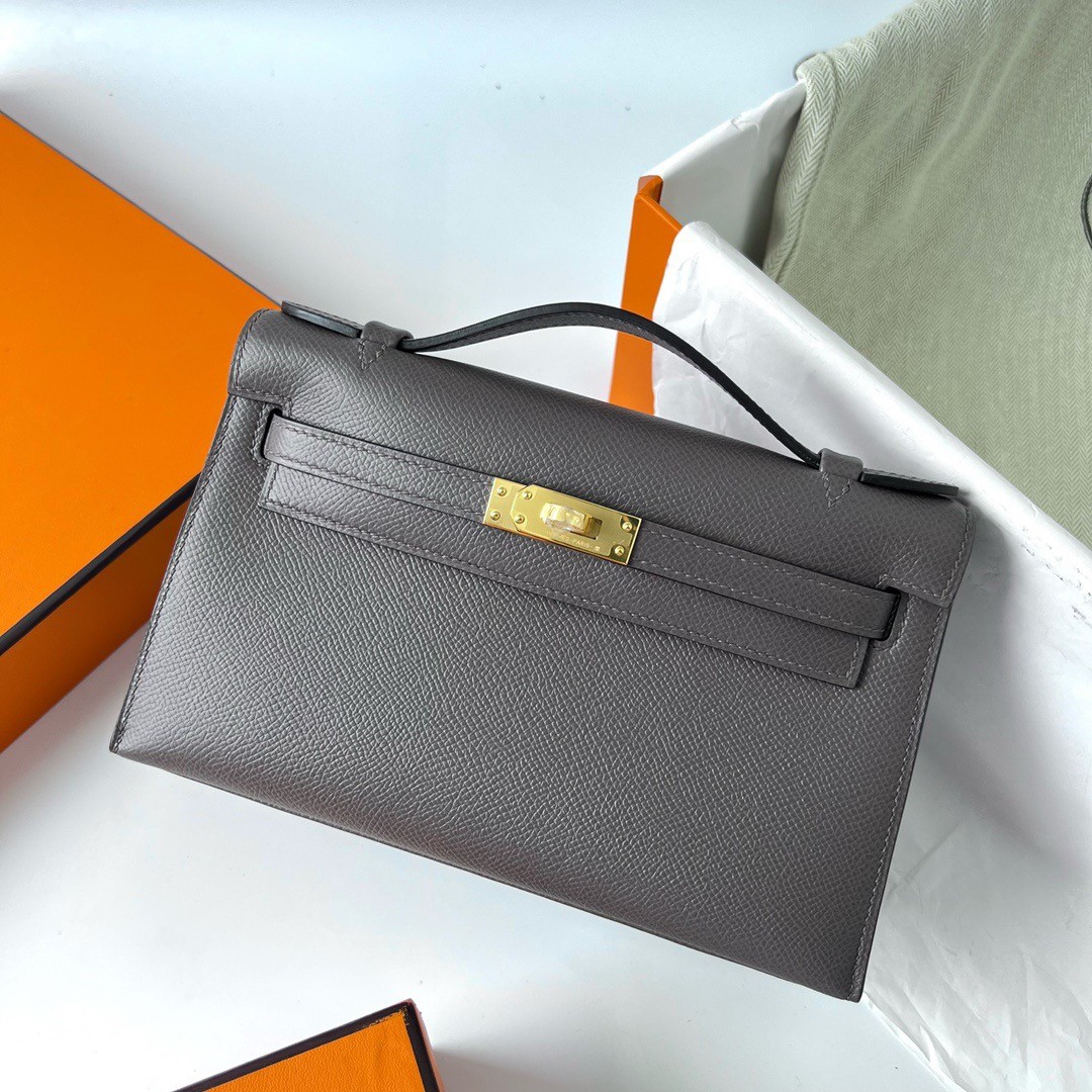 The Kelly Pochette was Jean-Paul Gaultier’s clutch interpretation of the classic Kelly bag. Introduced on the fall runway of his first collection for the House in 2004, the Kelly Pochette was an instant hit. This handbag is made from Epsom calfskin, which named from a town in south-east England that is famous for its horse races. The Kelly pochette is a true clutch with neither feet nor shoulder strap. It is remarkably roomy, holding more than the Kelly cut or the mini Kelly.