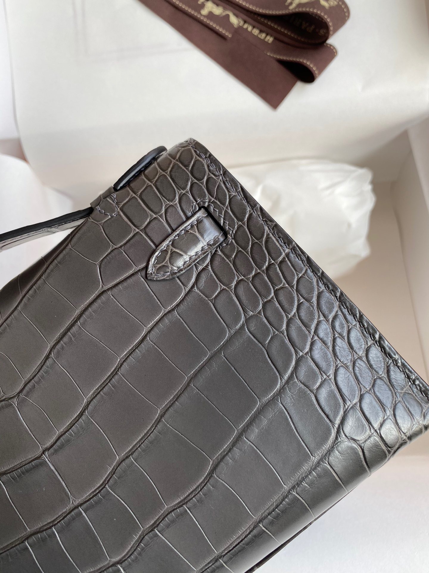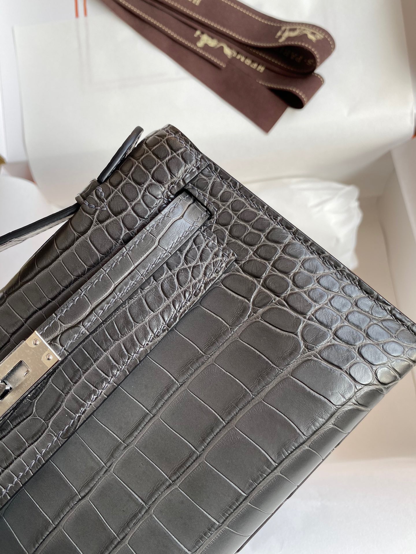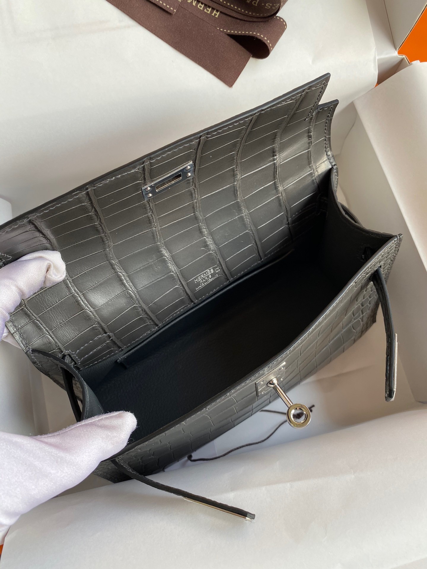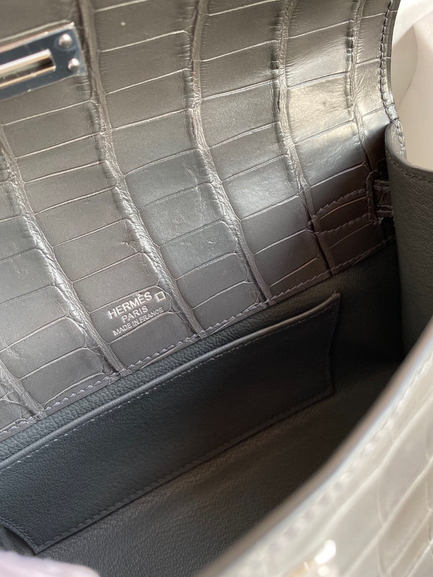 The Kelly Pochette was Jean-Paul Gaultier’s clutch interpretation of the classic Kelly bag. Introduced on the fall runway of his first collection for the House in 2004, the Kelly Pochette was an instant hit. This handbag is made from exotic Matte Alligator skin, not to be confused with crocodile, alligator tends to be sourced from Florida in the United States and its scales tend to be more patterned than crocodile. Delicate and very expensive, this clutch is a stunning example of how Herm??s can improve even on what seems perfect.
