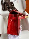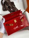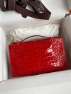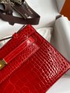 The Kelly Pochette was Jean-Paul Gaultier’s clutch interpretation of the classic Kelly bag. Introduced on the fall runway of his first collection for the House in 2004, the Kelly Pochette was an instant hit. This handbag is made from exotic Shiny Alligator skin with a Lisse finish, not to be confused with crocodile, alligator tends to be sourced from Florida in the United States and its scales tend to be more patterned than crocodile. Delicate and very expensive, this clutch is a stunning example of how Herm??s can improve even on what seems perfect.