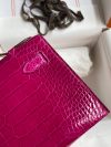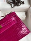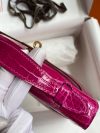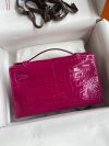 The Kelly Pochette was Jean-Paul Gaultier’s clutch interpretation of the classic Kelly bag. Introduced on the fall runway of his first collection for the House in 2004, the Kelly Pochette was an instant hit. This handbag is made from exotic Shiny Alligator skin with a Lisse finish, not to be confused with crocodile, alligator tends to be sourced from Florida in the United States and its scales tend to be more patterned than crocodile. Delicate and very expensive, this clutch is a stunning example of how Herm??s can improve even on what seems perfect.