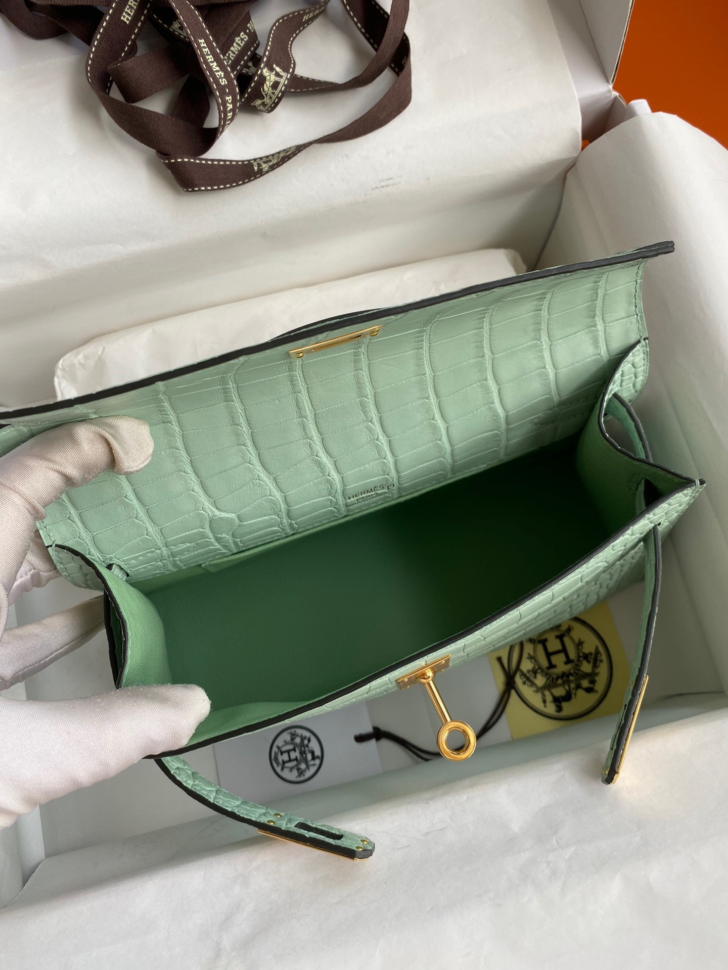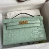 The Kelly Pochette was Jean-Paul Gaultier’s clutch interpretation of the classic Kelly bag. Introduced on the fall runway of his first collection for the House in 2004, the Kelly Pochette was an instant hit. This handbag is made from exotic Matte Alligator skin, not to be confused with crocodile, alligator tends to be sourced from Florida in the United States and its scales tend to be more patterned than crocodile. Delicate and very expensive, this clutch is a stunning example of how Herm??s can improve even on what seems perfect.