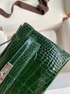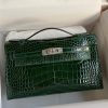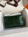 The Kelly Pochette was Jean-Paul Gaultier’s clutch interpretation of the classic Kelly bag. Introduced on the fall runway of his first collection for the House in 2004, the Kelly Pochette was an instant hit. This handbag is made from exotic Shiny Alligator skin with a Lisse finish, not to be confused with crocodile, alligator tends to be sourced from Florida in the United States and its scales tend to be more patterned than crocodile. Delicate and very expensive, this clutch is a stunning example of how Herm??s can improve even on what seems perfect.