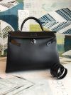 The Herm??s Kelly 35cm bag is a large, versatile bag perfect for travel. While some women enjoy toting this piece for special occasions, others love the casual-chic appeal of wearing the Kelly 35cm as an oversized tote for their everyday essentials. The Sellier Kelly is a highly structured bag, with the stitching appearing outside the bag, further enhancing the clean, sharp lines of the bag. Sellier is the style made famous by Grace Kelly. This Sellier Kelly is generally made from Box leather – the first leather used by Herm??s artisans to craft bags.