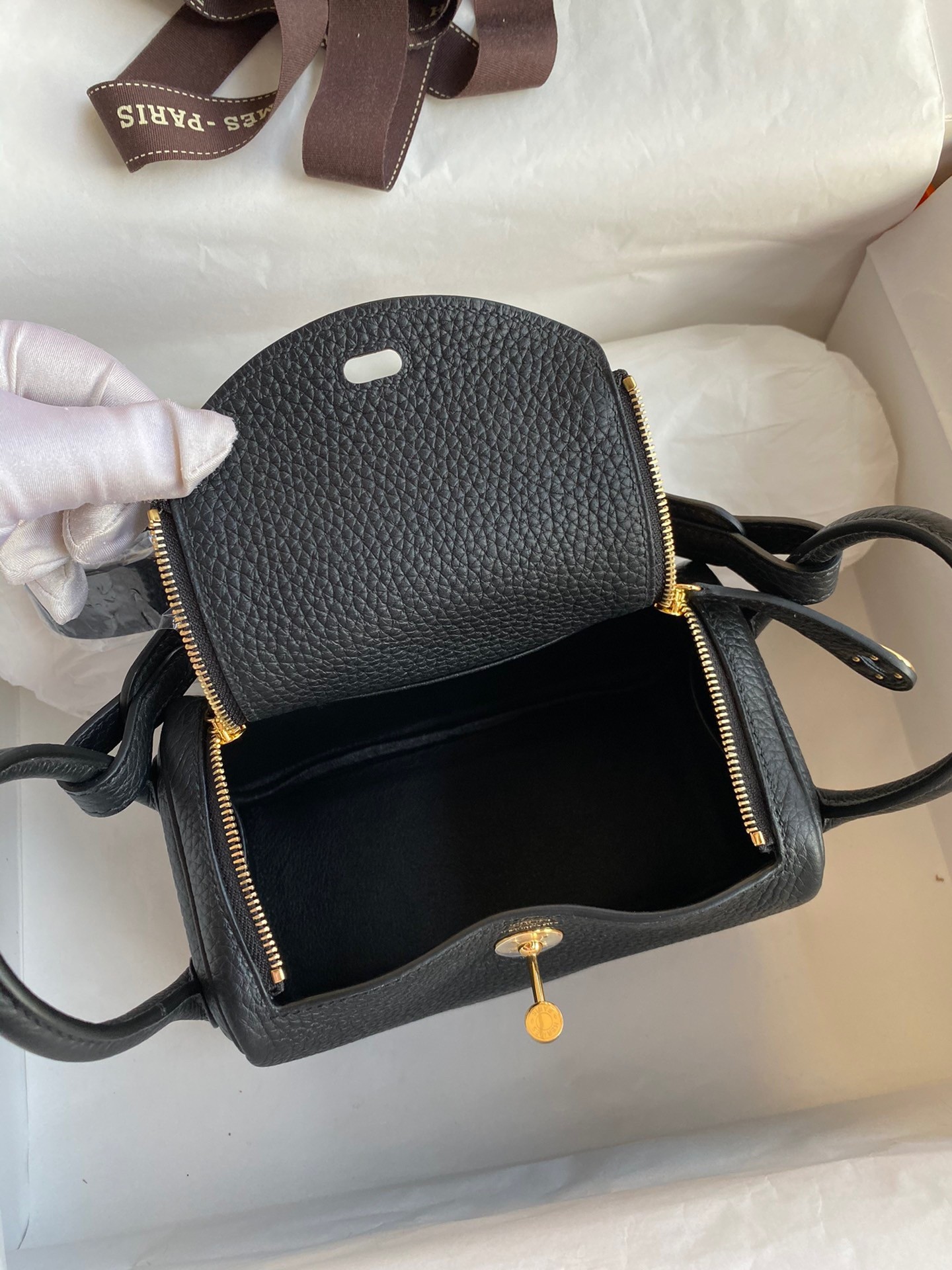 Hermes Mini Lindy Handmade Bag In Black Clemence Leather