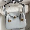 Hermes Mini Lindy Handmade Bag In Blue Brume Clemence Leather