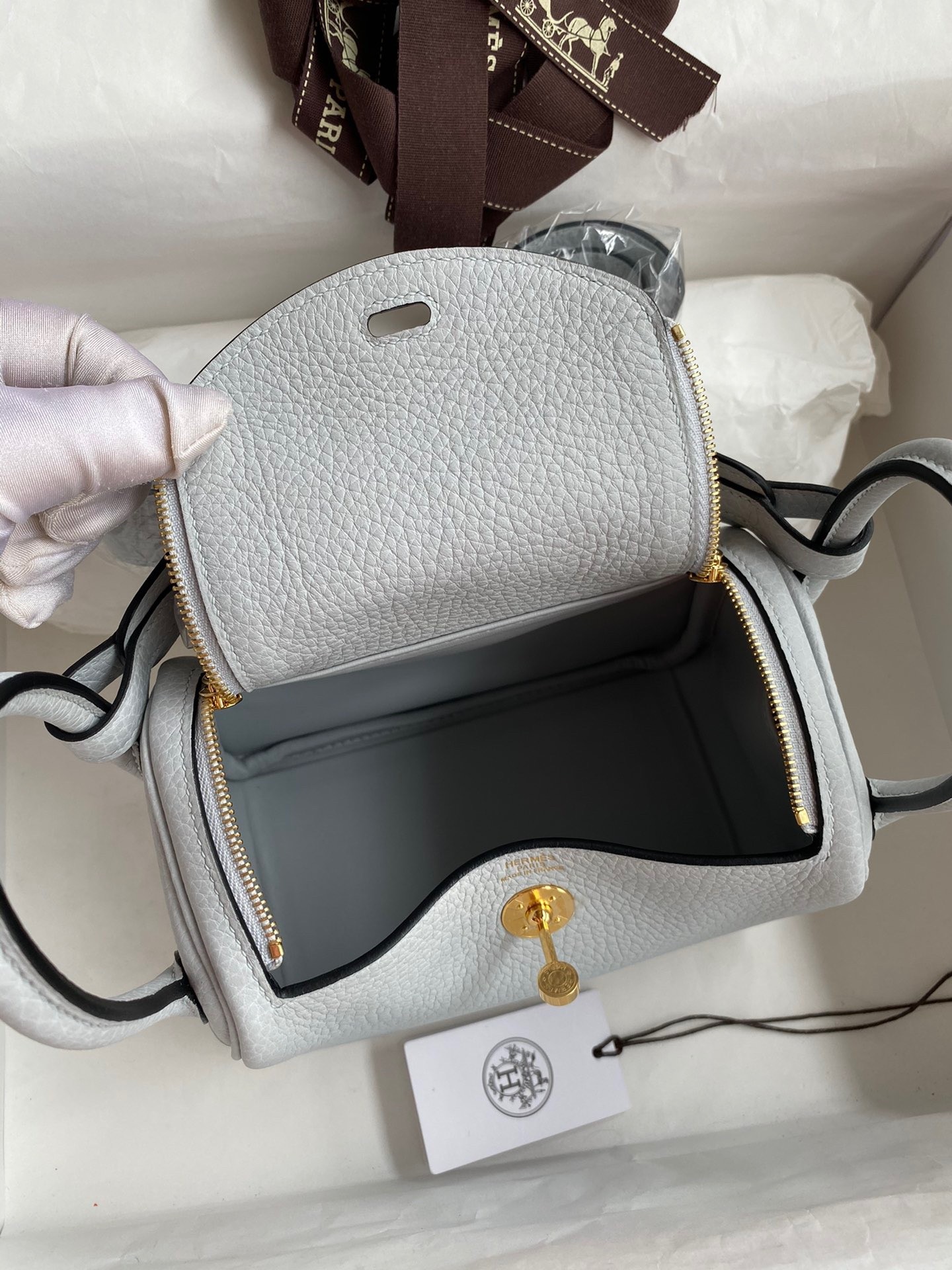 Be the first to review “Hermes Mini Lindy Handmade Bag In Blue Brume Clemence Leather”