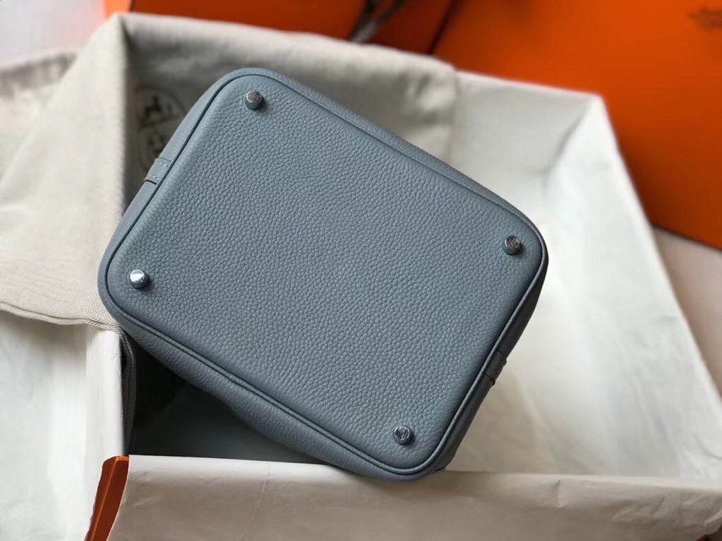 Hermes Picotin Lock 22 Bag In Blue Lin Clemence Leather