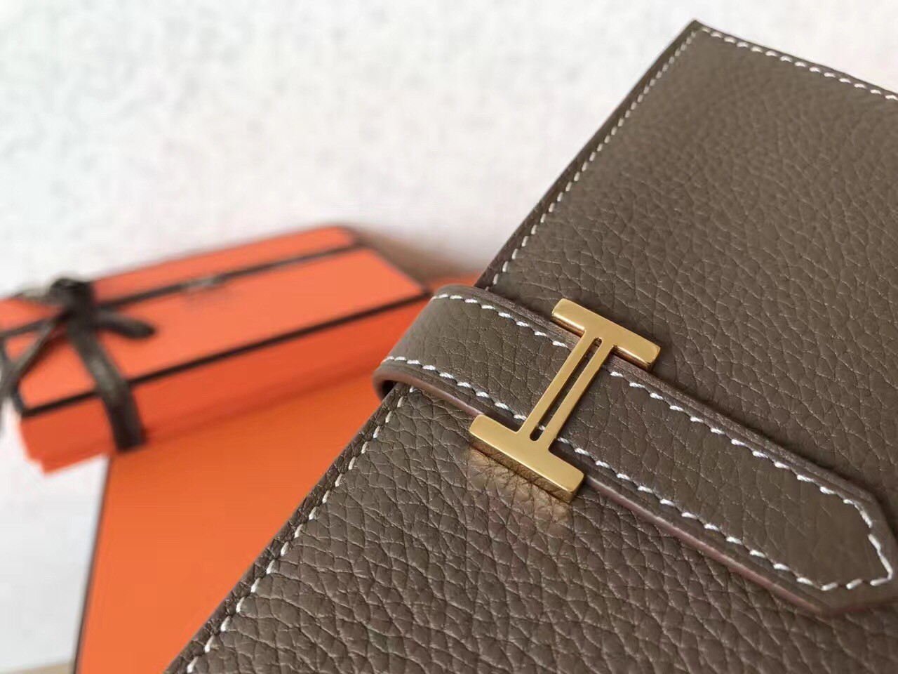 Be the first to review “Hermes Taupe Clemence Bearn Gusset Wallet”