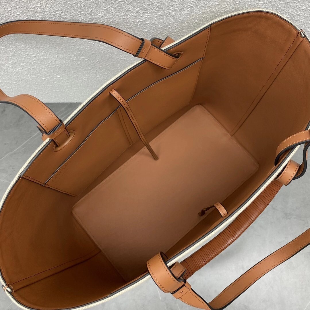 Loewe was founded by a collective of artisans dedicated to leatherworking – under Jonathan Anderson’s direction, its legacy of craftsmanship remains “the living soul of the house.” Fully lined and trimmed with the supple material, this tote has been made in Spain from canvas debossed with the updated ‘Anagram’ logo. Carry yours by the braided top handles, switching to the longer straps when it’s full to the brim.
