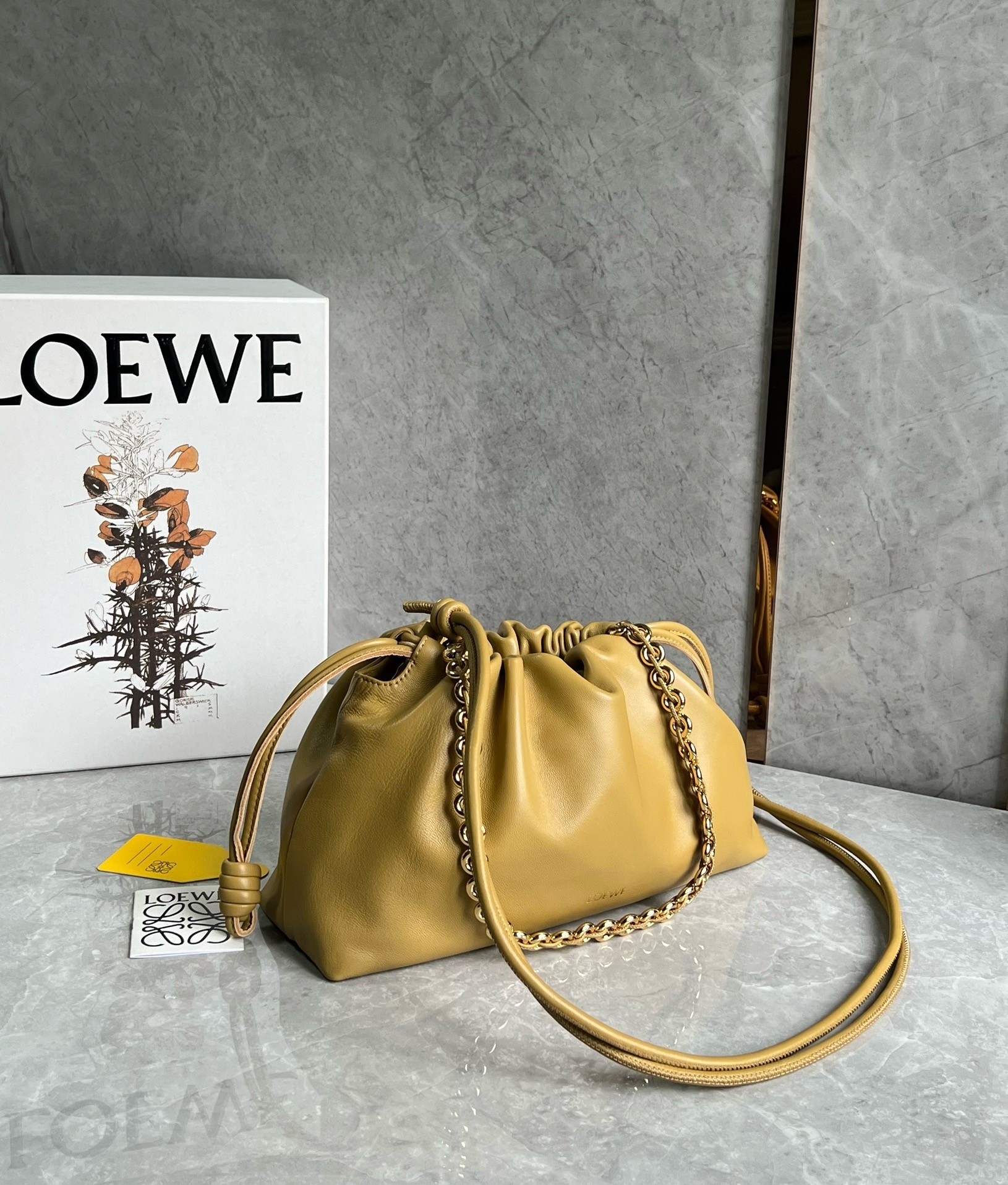 Under the creative direction of Jonathan Anderson, Spanish brand LOEWE has become one of the most globally coveted brands in the fashion loop. The Flamenco shoulder bag sports a relaxed silhouette that exudes understated appeal and comes with a gold-toned pebble-shaped chain handle that provides the option of added visual appeal.
