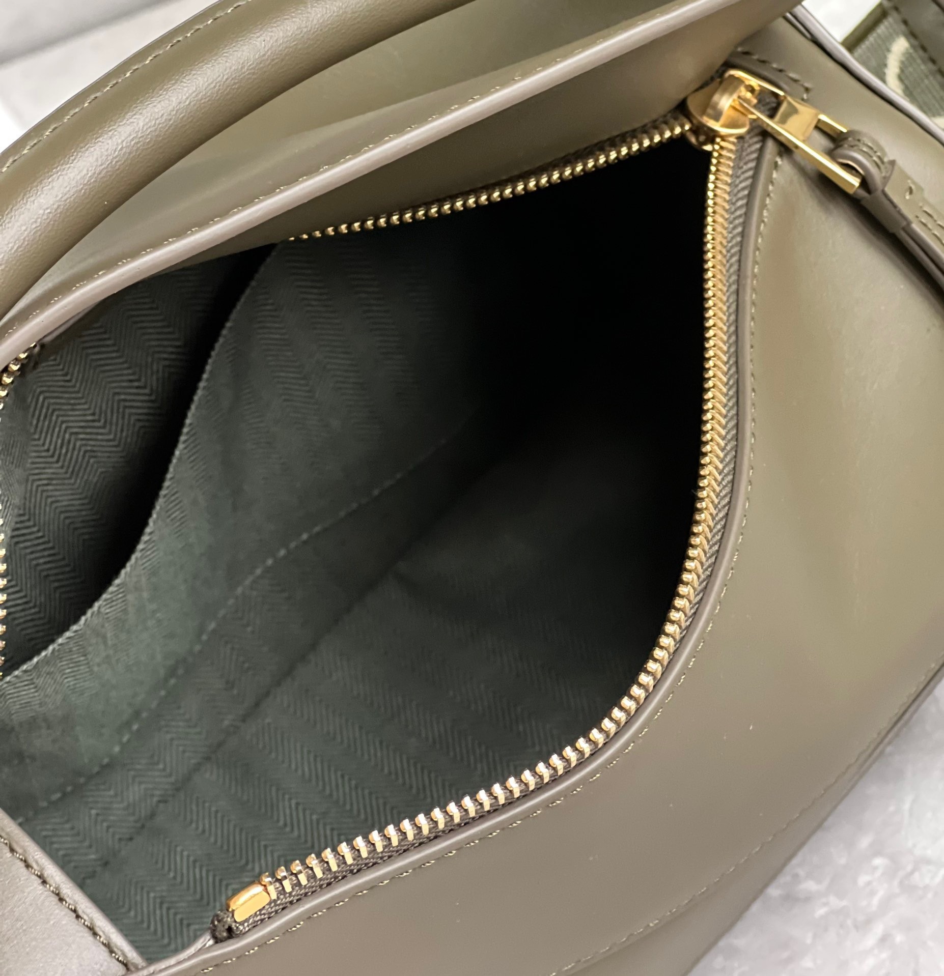 This Edge version of Loewe’s signature Puzzle bag comes with a logo-woven canvas strap and detailed with tonal hardware. The rest of the design is true to form, defined by its angular leather panels and debossed ‘Anagram’ logo. It has plenty of space inside, and you can choose to carry it in hand or by the longer cross-body strap.