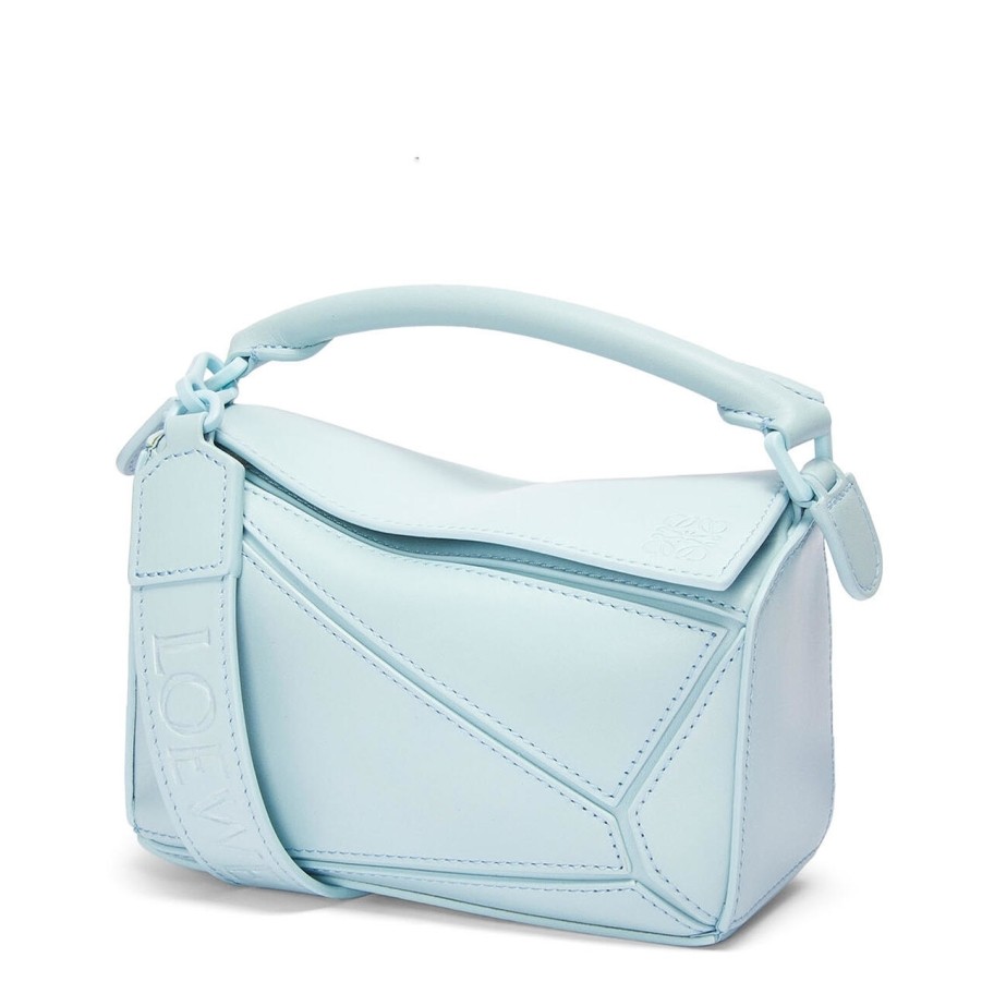 When expert craftsmanship and innovative design meet, you get the Puzzle Mini shoulder bag from Loewe. Jonathan Anderson wanted to create a bag that mirrors the brand*s multi-faceted identity, so leather artisans cut its satin calfskin panels into unique geometric shapes and placed them in a now-iconic asymmetric setting. Swing yours by the long strap or carry it in-hand 每 the latter manipulating the leather into a softer shape.