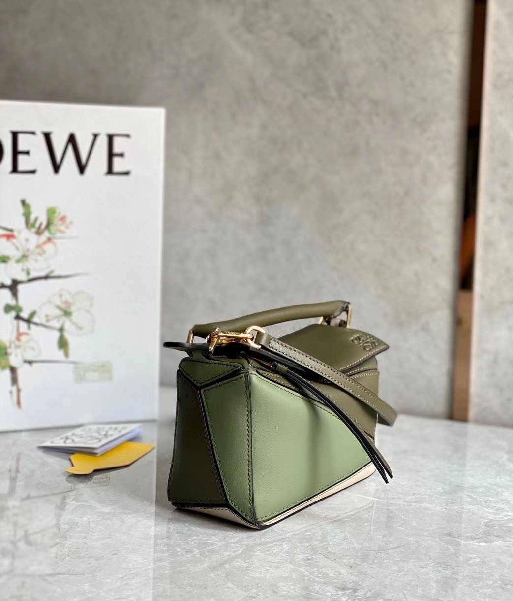 Loewe’s ‘Puzzle’ bag was the first design Jonathan Anderson created after being appointed Creative Director back in 2013, and it’s remained a cult piece ever since. Expertly crafted from classic calfskin, this color-block version is detailed with hand-painted black edges that really emphasize the origami-inspired panels. Carry it as a tote or fold it to fit under your arm as a clutch.