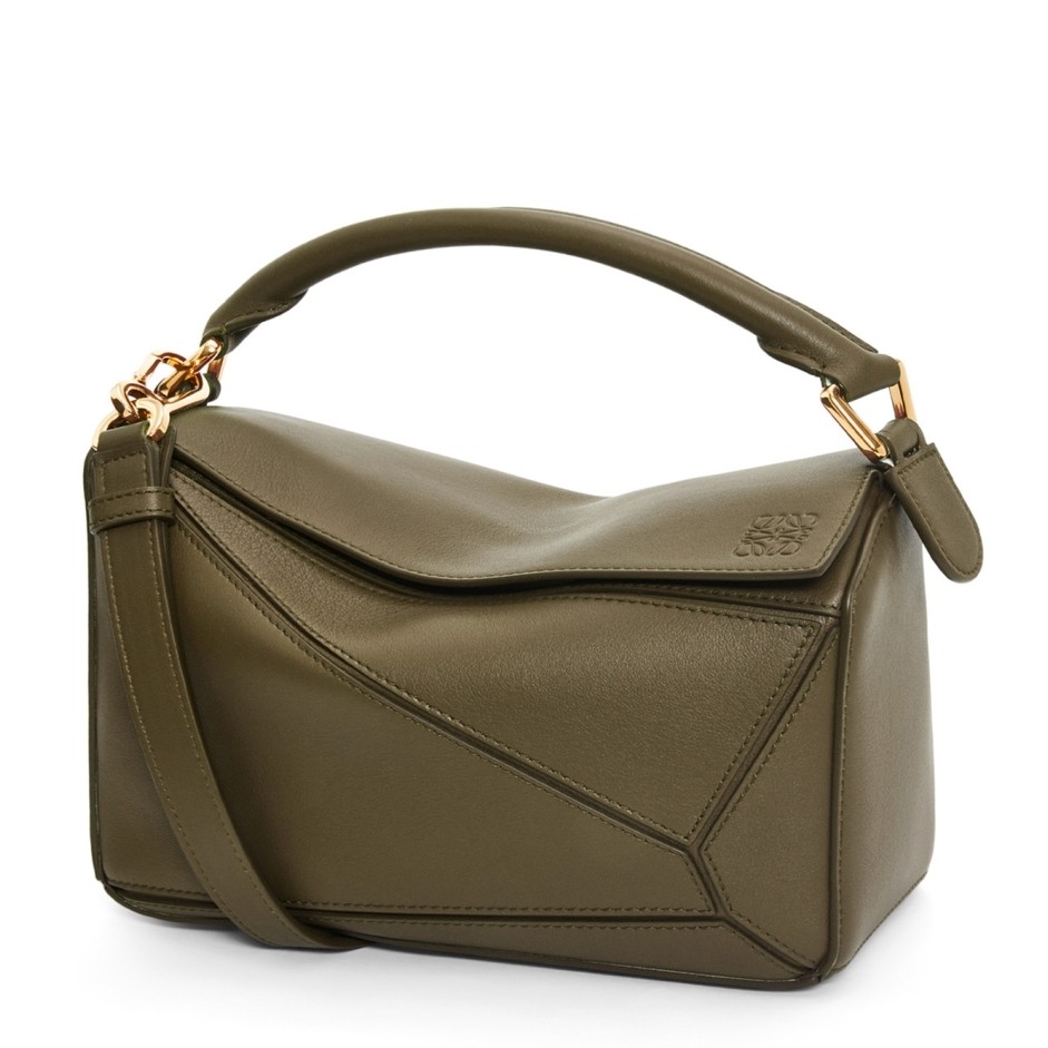 Jonathan Anderson’s Puzzle small bag has become a Loewe icon with its innovative cuboid shape and multi-function style; from a shoulder bag to a clutch, this handy accessory folds completely flat, making it the perfect choice when travelling. Hand-painted edges and gold-toned hardware give the bag an extra touch of irresistible style, while leather ensures luxury and durability.