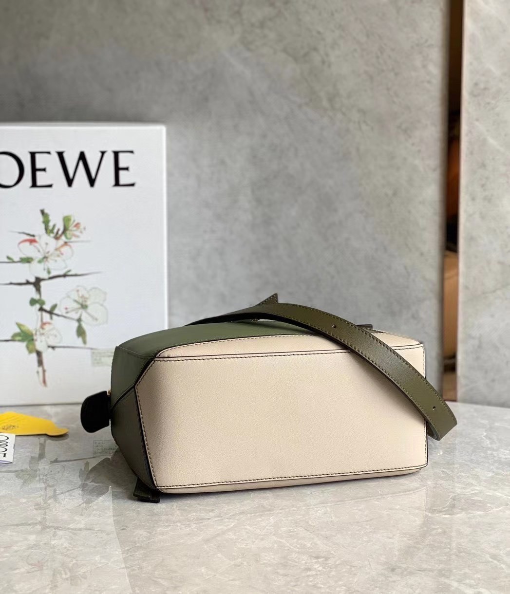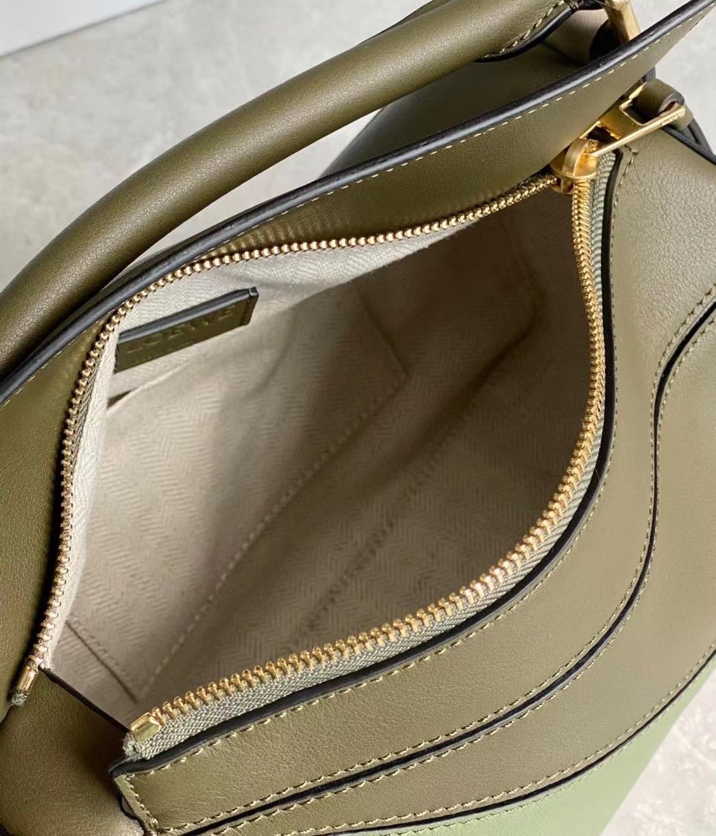 The first bag designed after Jonathan Anderson was appointed creative director in 2014, the Puzzle bag from LOEWE exudes modern artistry with its innovative cuboid shape that takes 524 actions to complete and perfect. Crafted from smooth leather and suspended from a chunky top handle, this small color-block version is defined by the segmented outer pattern and slouchy silhouette that can be conveniently folded completely flat for compact storage.