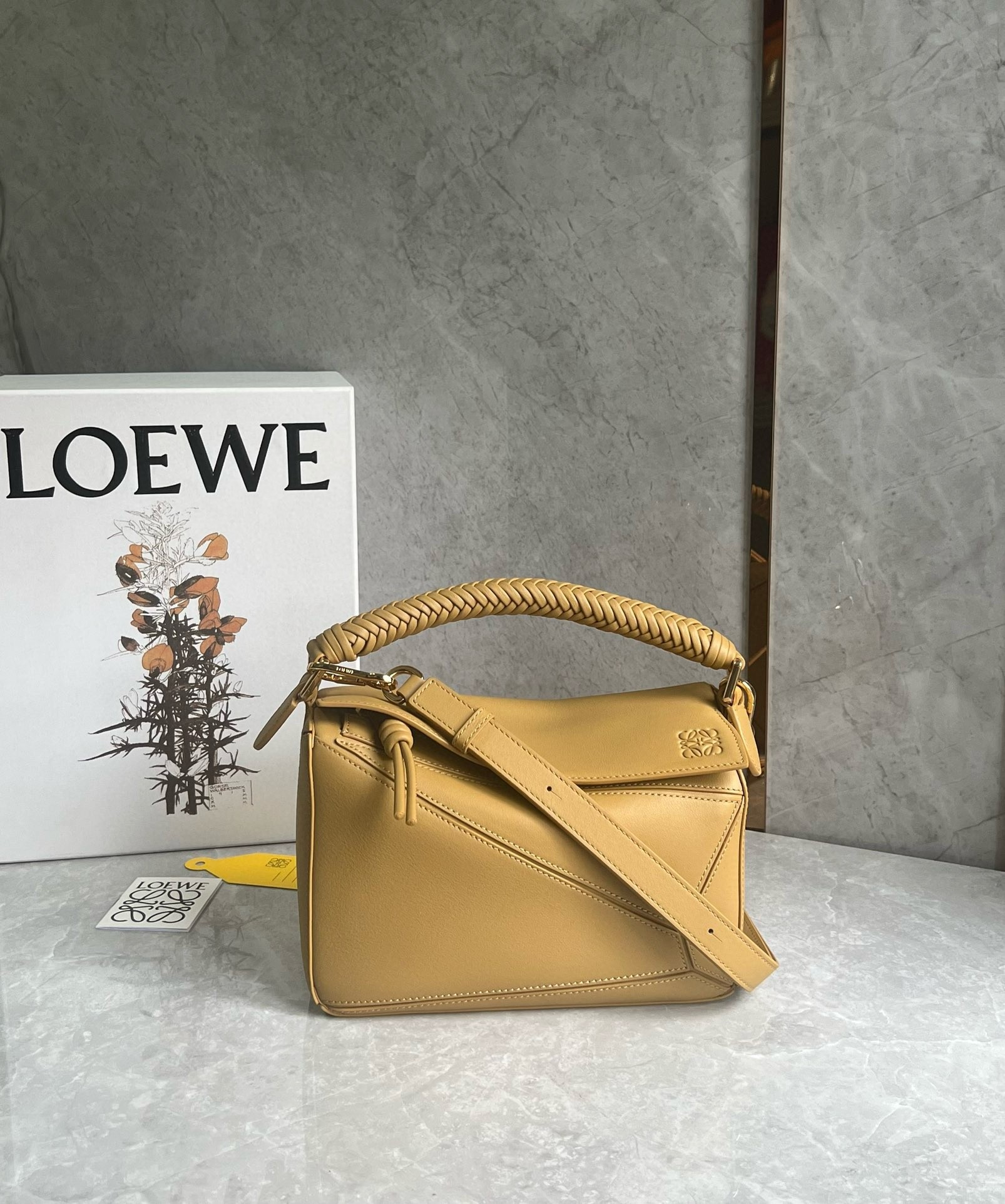 The first bag designed after Jonathan Anderson was appointed creative director in 2014, the Puzzle bag from LOEWE exudes modern artistry with its innovative cuboid shape. Contemporary design paired with traditional craftsmanship are combined in the Puzzle model from LOEWE. The braided handle and the detachable and adjustable strap characterize this model.