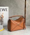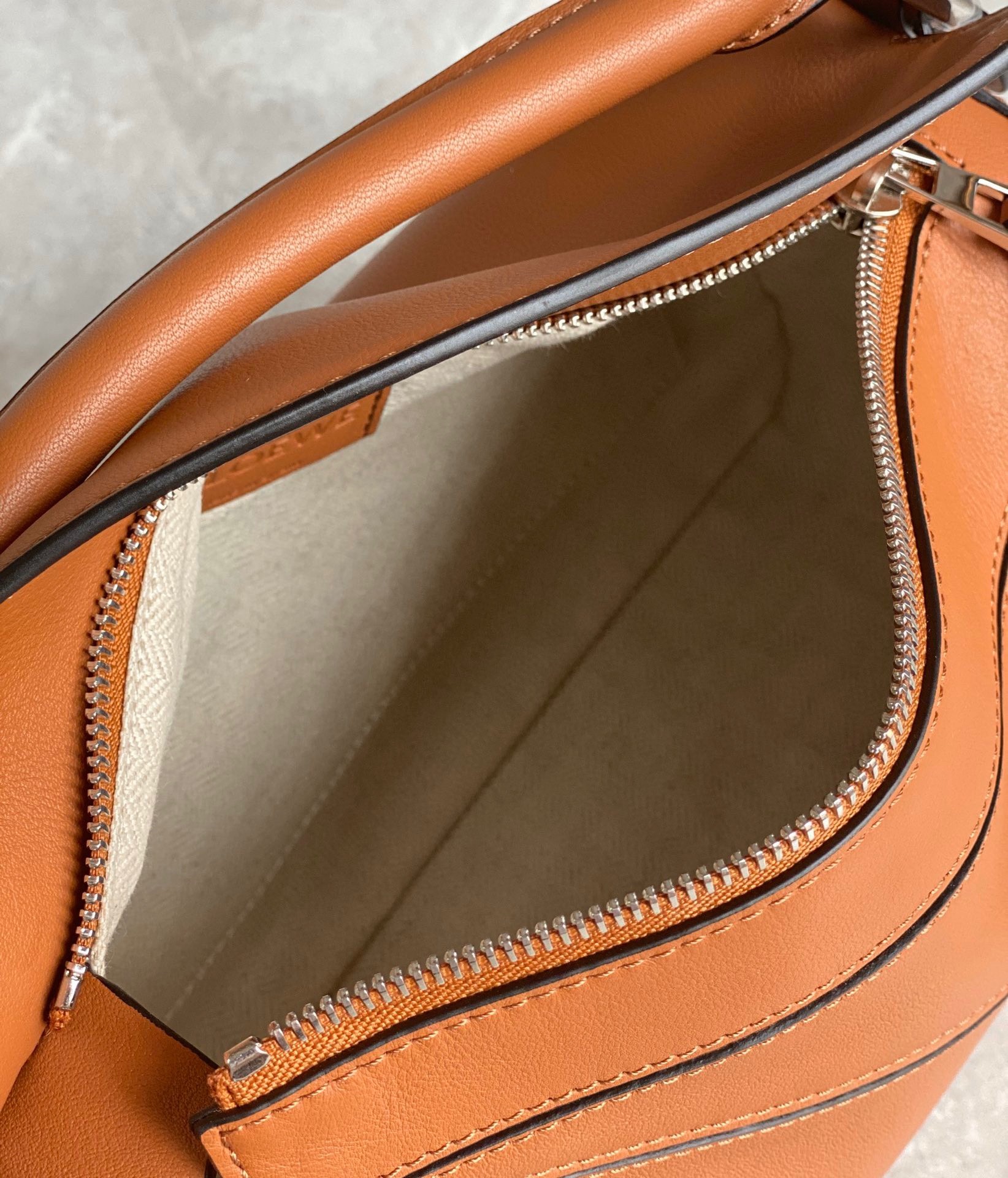 Jonathan Anderson’s Puzzle small bag has become a Loewe icon with its innovative cuboid shape and multi-function style; from a shoulder bag to a clutch, this handy accessory folds completely flat, making it the perfect choice when travelling. Hand-painted edges and gold-toned hardware give the bag an extra touch of irresistible style, while leather ensures luxury and durability.
