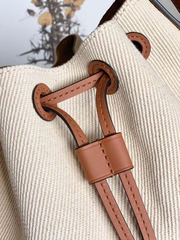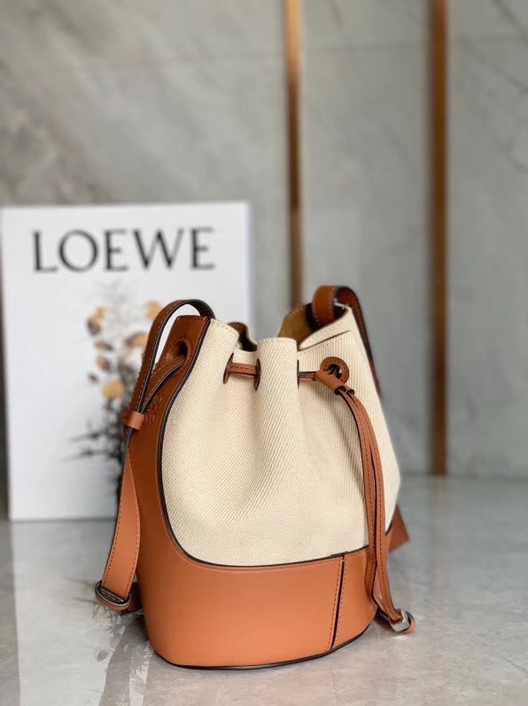 Loewe’s Balloon bucket bag is a brand new style for Spring ’20. This small version has been made in the label’s historic Madrid workshop from cotton-canvas and tan leather. The base is debossed with the house’s recognizable swirling logo, too.