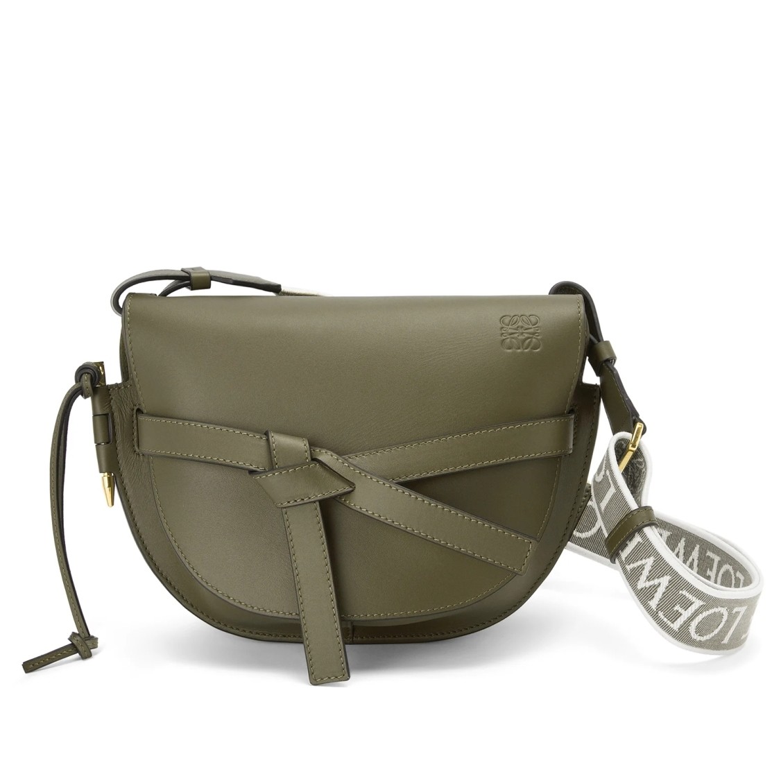Loewe’s Gate bag is named after the latch at the side and the saddle-stitched knotted leather strap. This small version has been crafted from supple leather, lined in suede and detailed with contrasting topstitching that’s testament to the brand’s artisanal expertise. Wear the logo-jacquard canvas strap cross-body.
