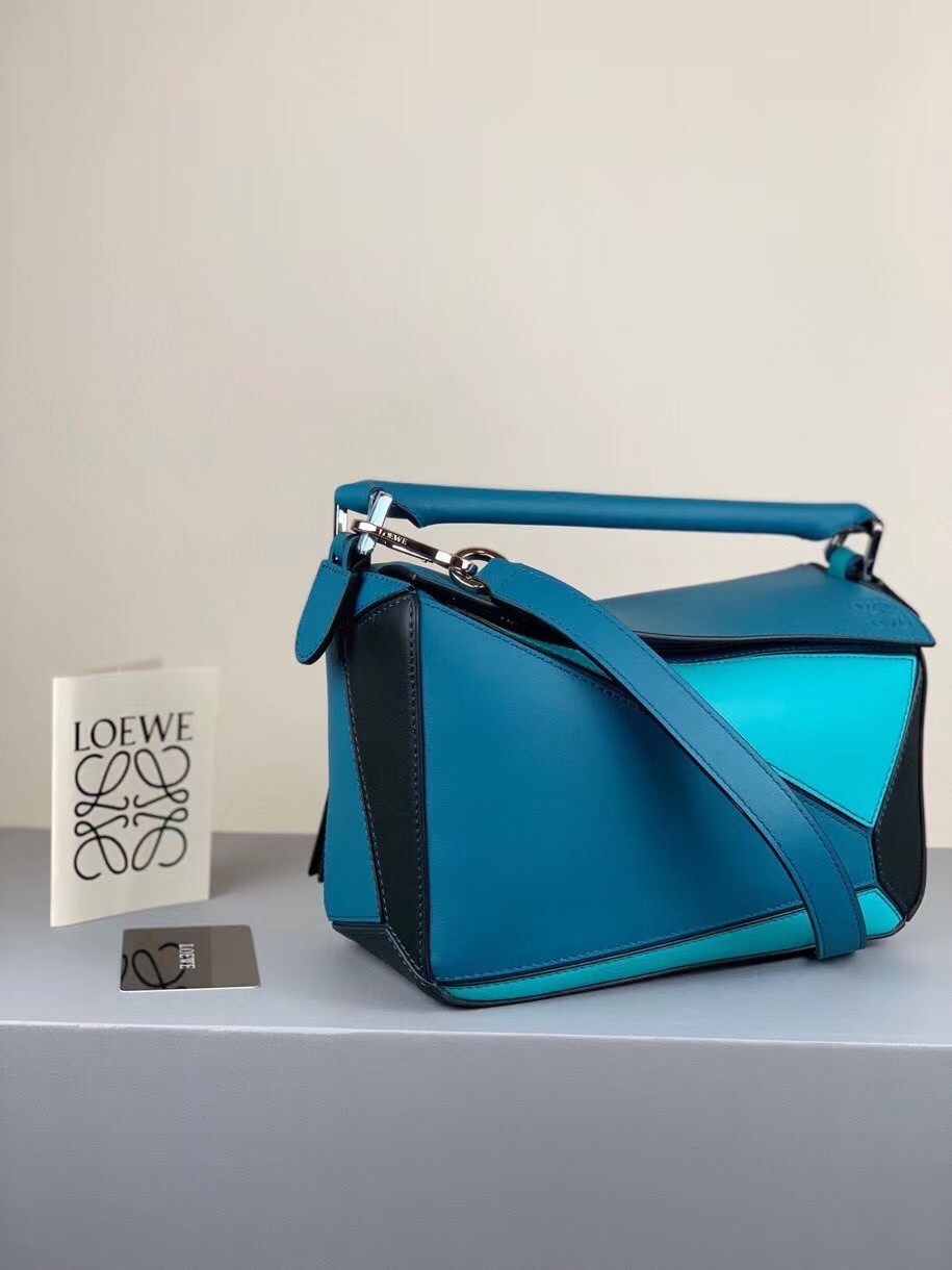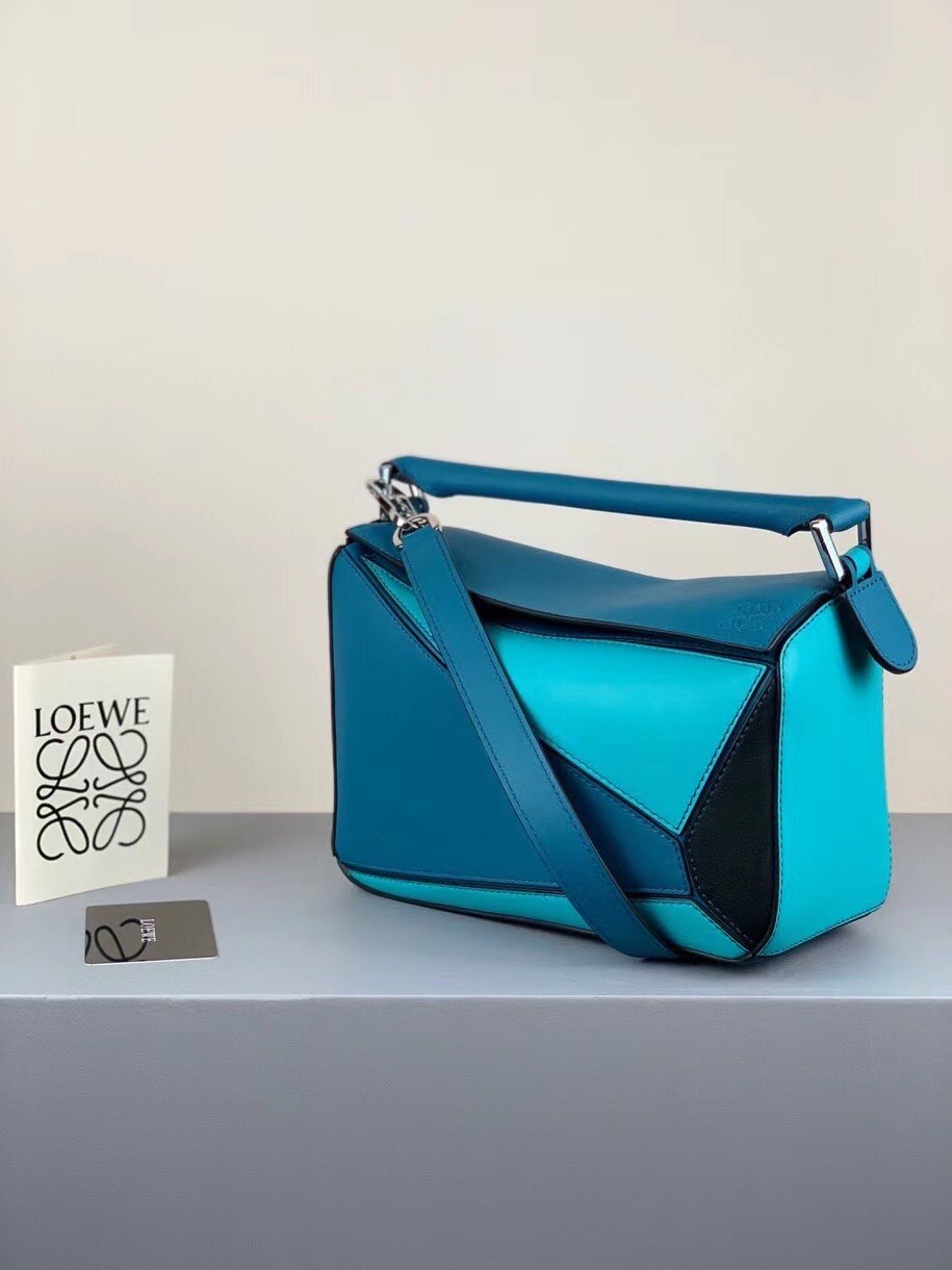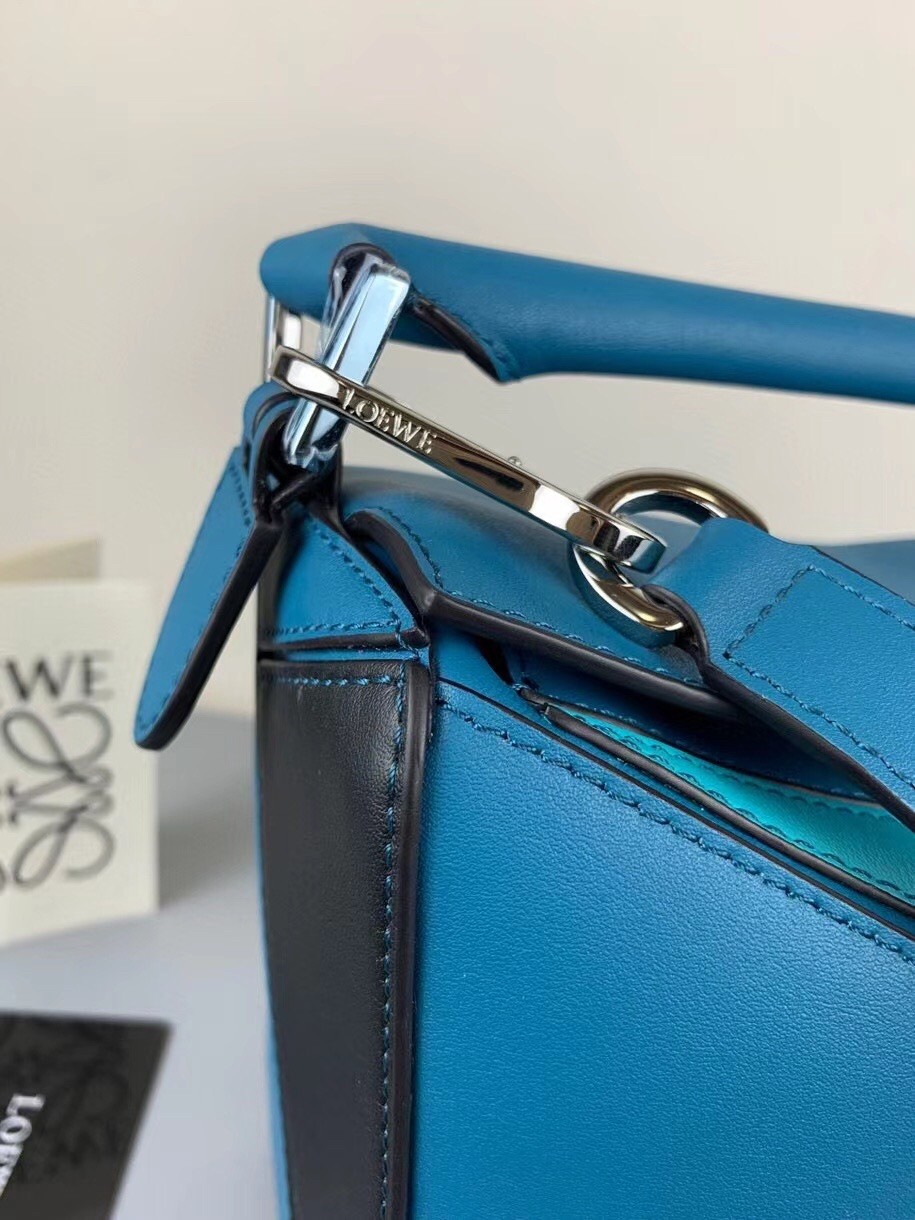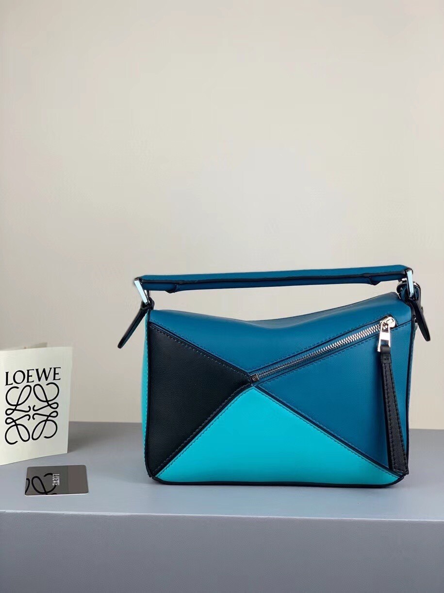 Loewe’s ‘Puzzle’ bag has become one of the label’s most iconic styles and coveted for its versatility 每 it can be transformed from a tote to a clutch, or worn cross-body. Immaculately made from panels of Dark Lagoon, Black and blue leather, this structured piece has a spacious interior fitted with pouch pockets for your cell phone, wallet and keys. Adjust the optional strap to your preferred length.