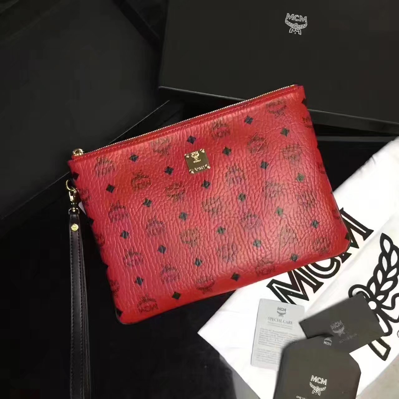 Be the first to review “MCM Large Stark Pouch With Wristlet Red”