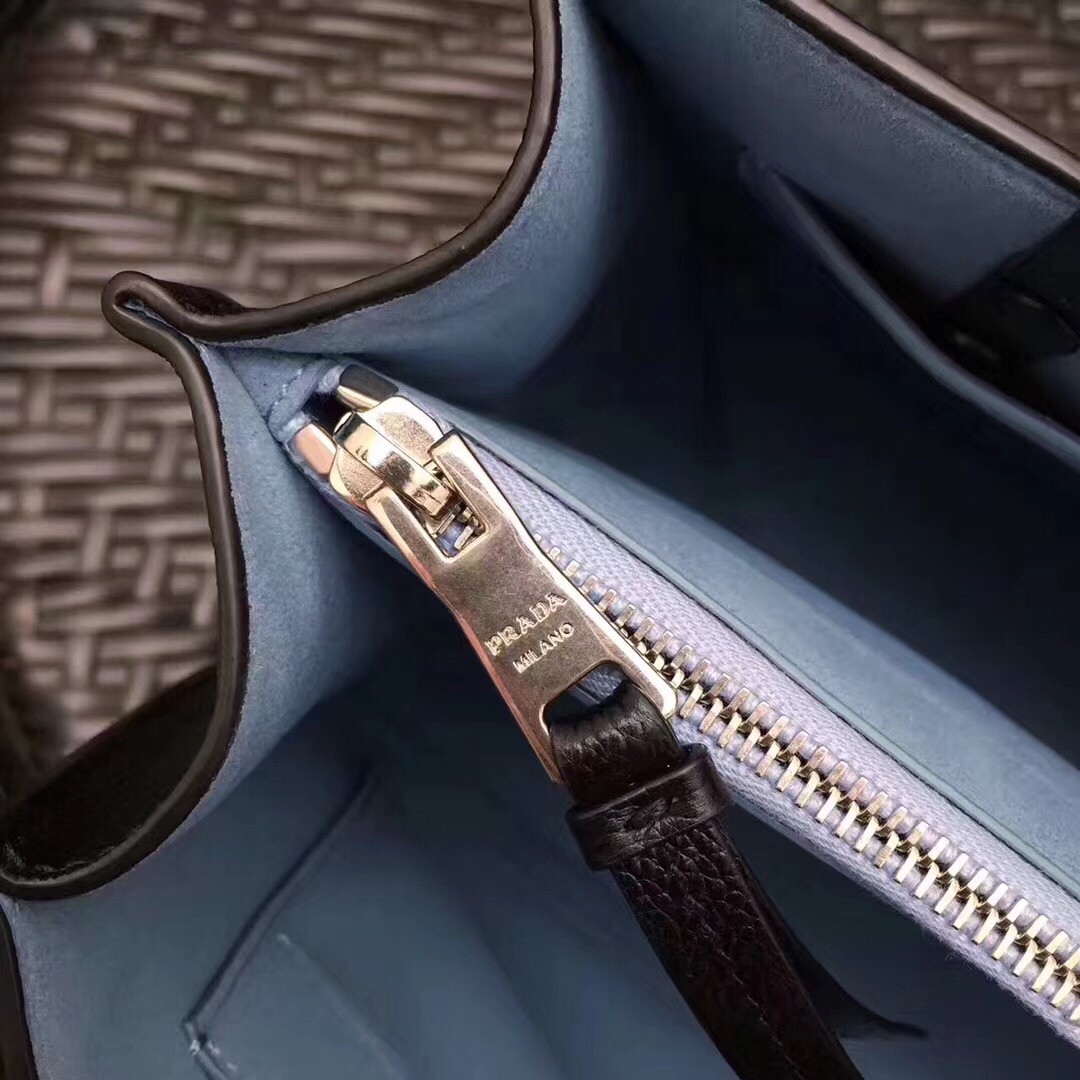 – Prada Etiquette logo on leather in a contrasting color